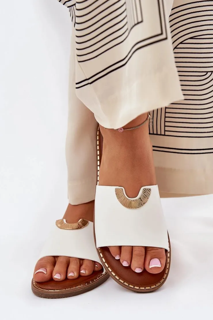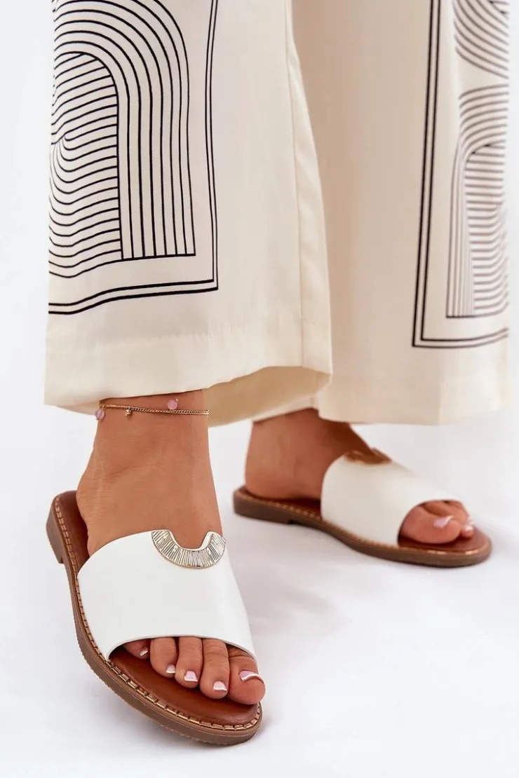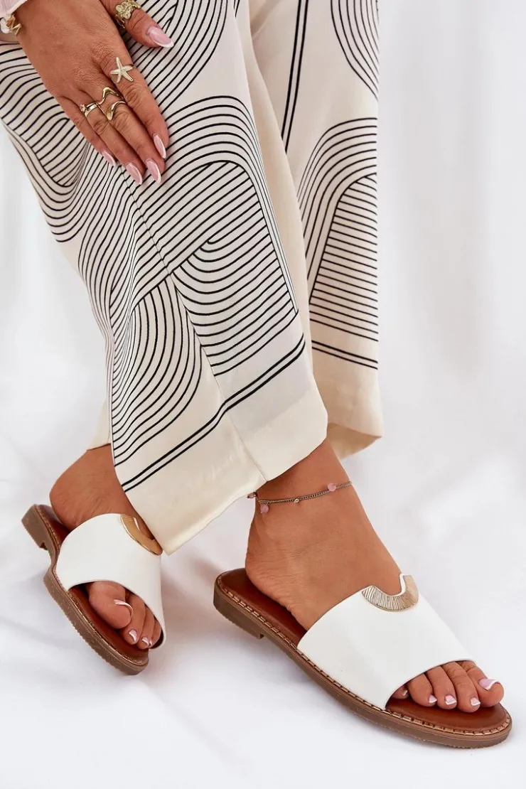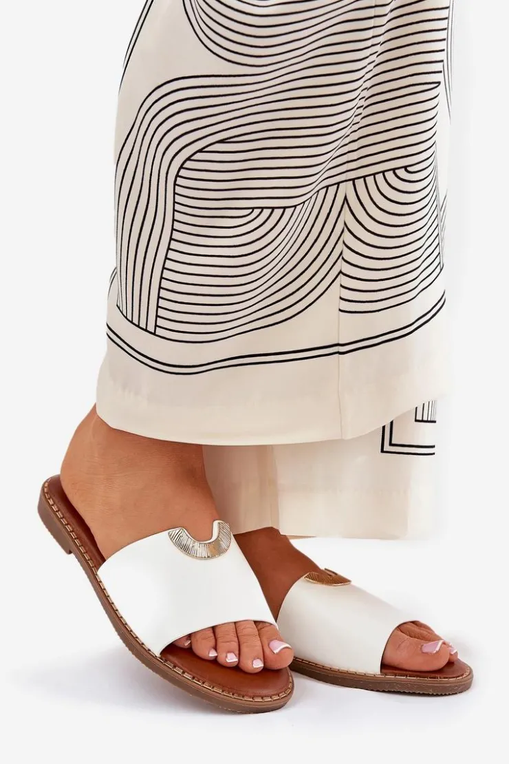 Klapki damskie na płaskim obcasie to idealny wybór na letnie dni. Wykonane z ekologicznej skóry. Klasyczny fason wzbogacony został o ozdobne detale, które nadają im eleganckiego charakteru. Doskonałe zarówno na co dzień, jak i na letnie spacery. Świetnie komponują się z sukienkami, spódnicami oraz spodniami, dodając stylowego akcentu każdej stylizacji. Przy wyborze rozmiaru prosimy sugerować się tabelą rozmiarów.