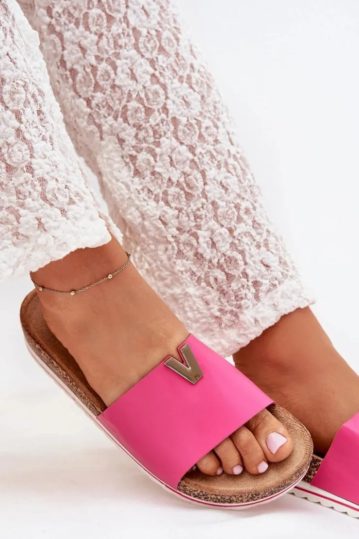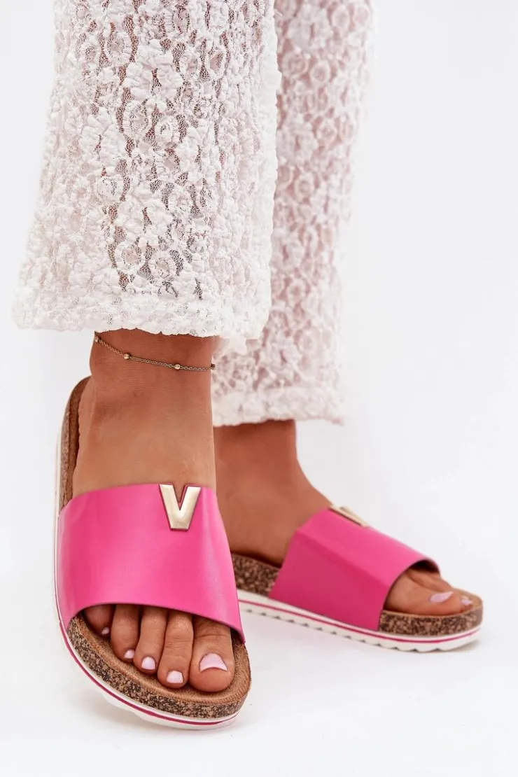 Klapki damskie z eko skóry, osadzone na korkowej platformie, to połączenie komfortu i stylu. Złoty detal w kształcie litery „V” dodaje im elegancji, a profilowana, eko zamszowa wkładka zapewnia wygodę przez cały dzień. Idealne do codziennych stylizacji, doskonale komponują się z sukienkami, spódnicami czy spodniami, łącząc funkcjonalność z modnym wyglądem. Przy wyborze rozmiaru prosimy sugerować się tabelą rozmiarów.