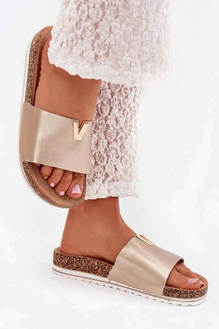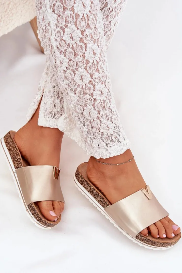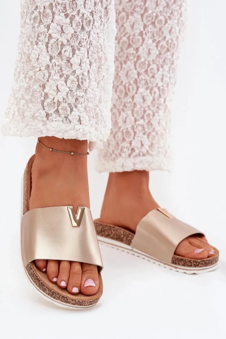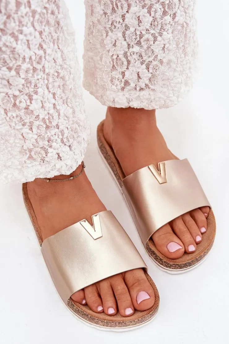 Damskie Boto Klapki Damskie Na Korkowej Platformie Z Ozdobnym Detalem Złote Vessira