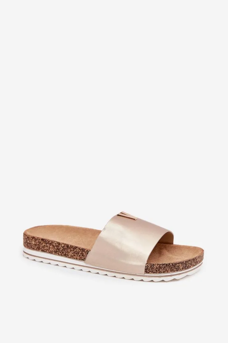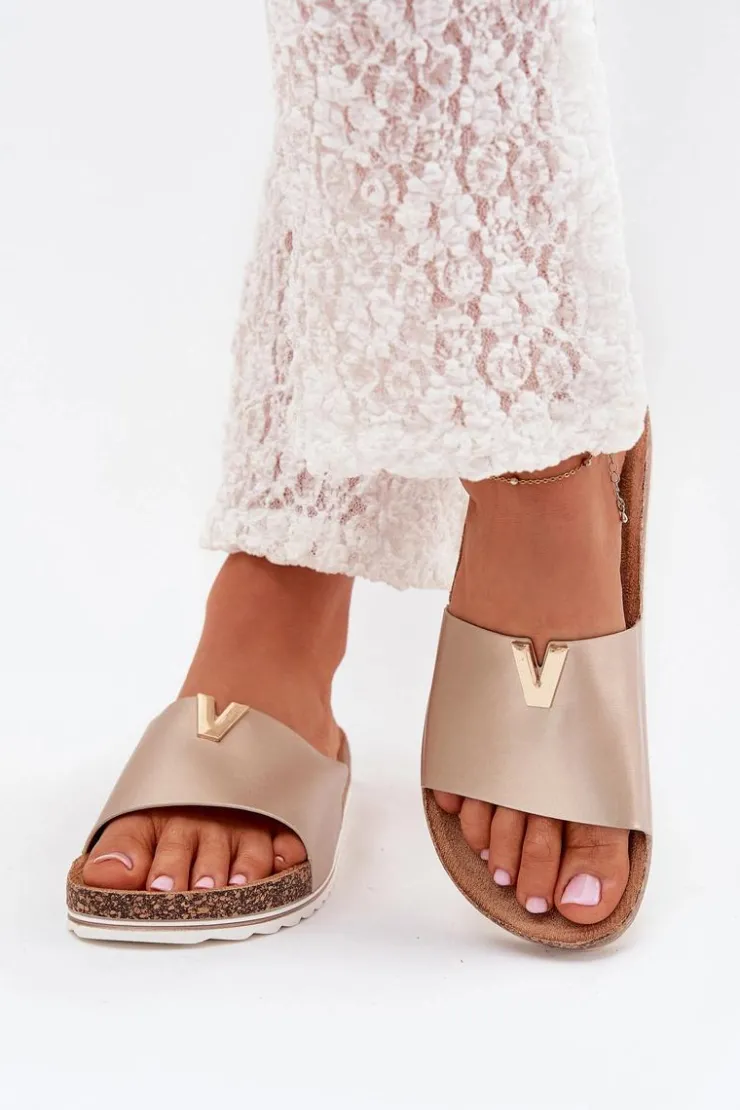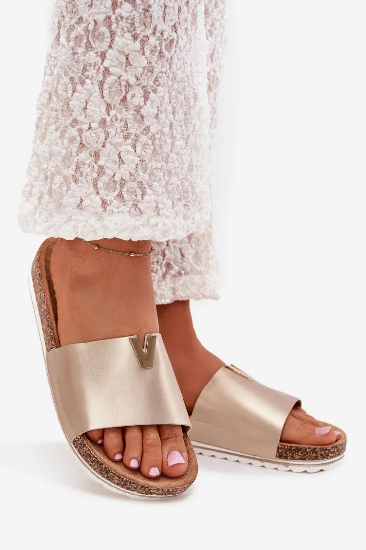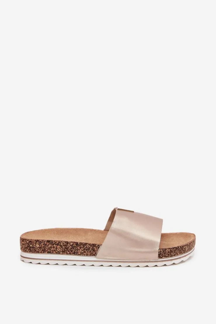 Damskie Boto Klapki Damskie Na Korkowej Platformie Z Ozdobnym Detalem Złote Vessira