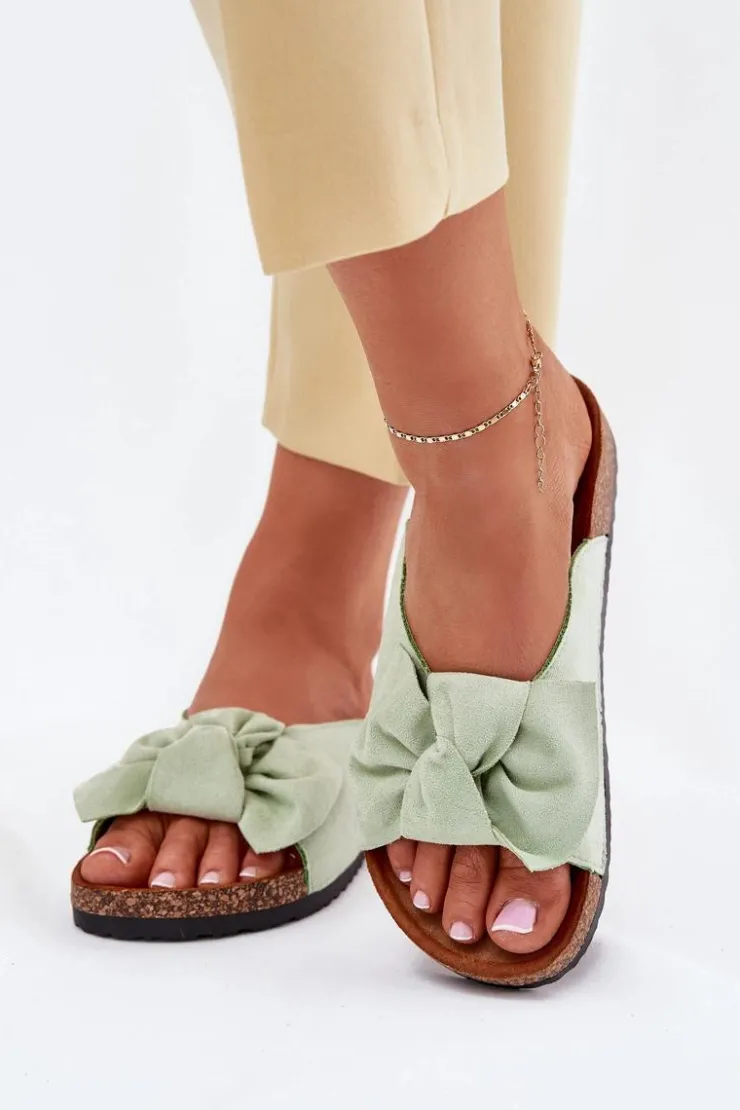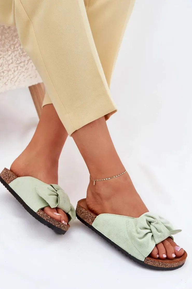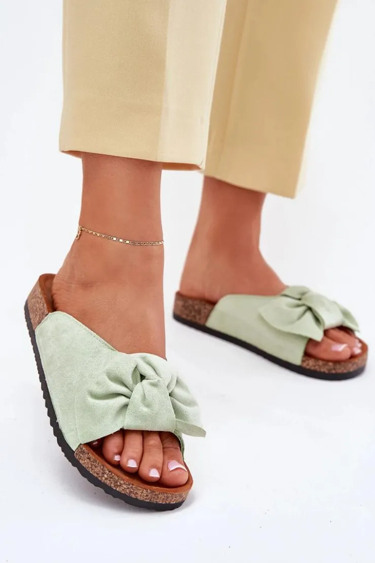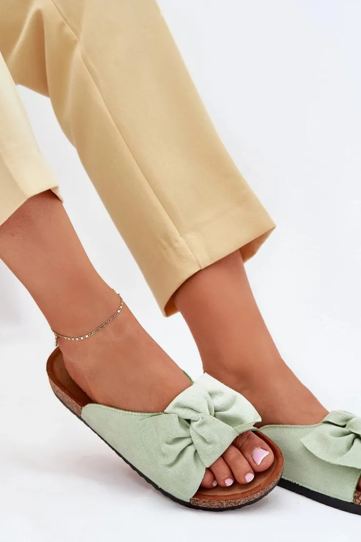 Damskie Boto Klapki Damskie Na Korkowej Podeszwie Kokardką Miętowe Seressa