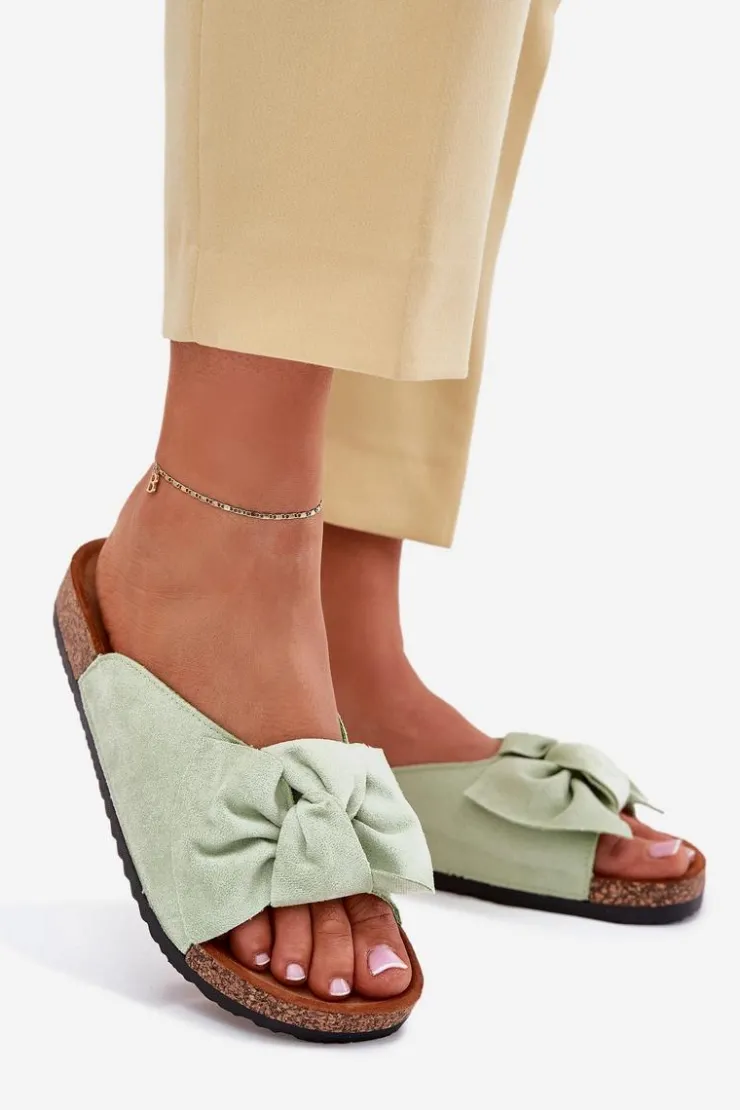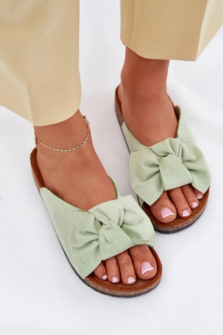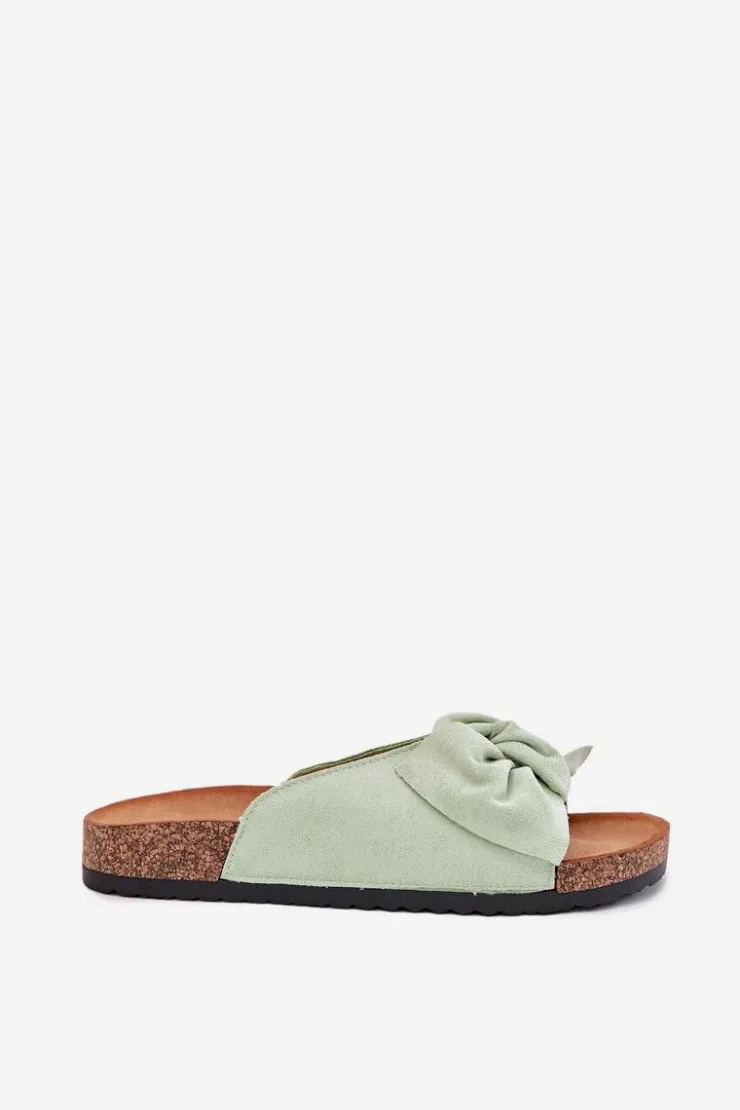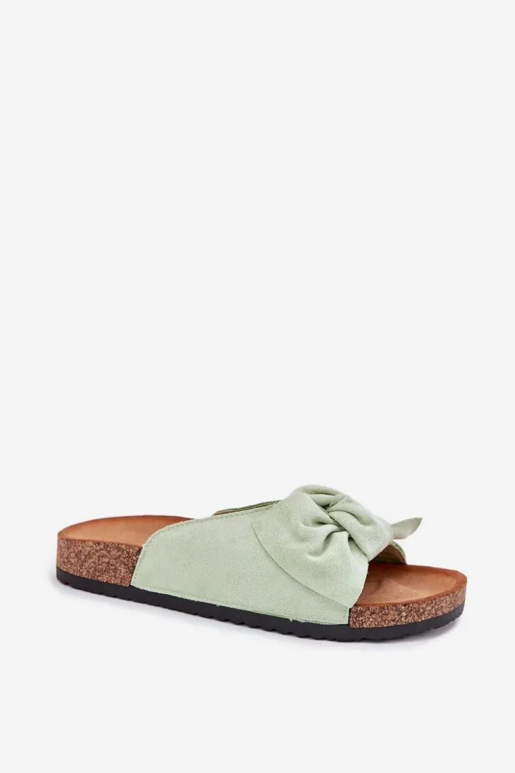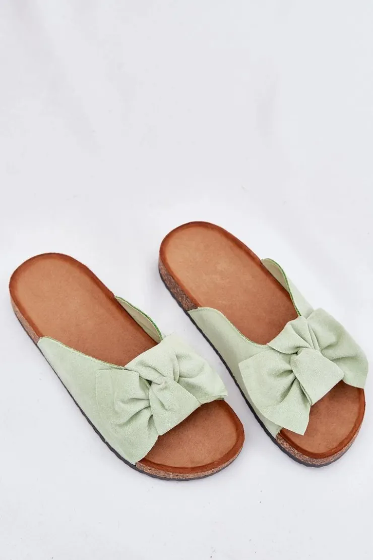 Damskie Boto Klapki Damskie Na Korkowej Podeszwie Kokardką Miętowe Seressa