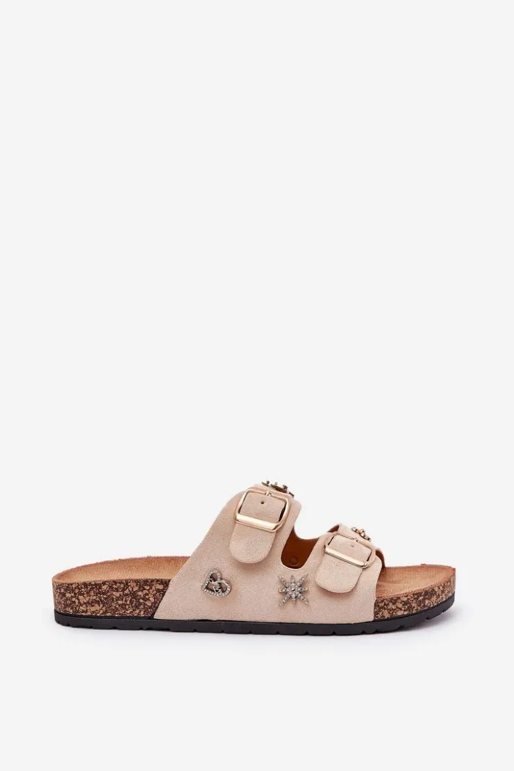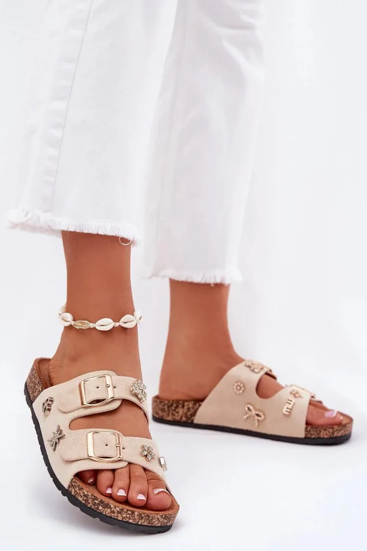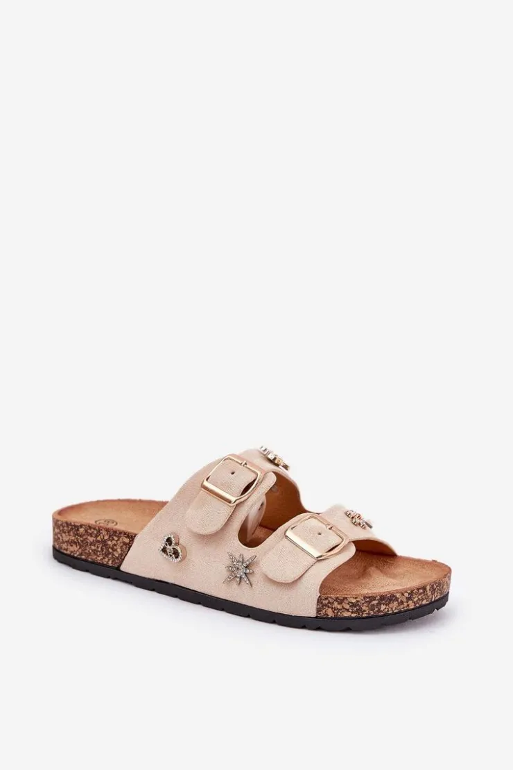 Damskie Boto Klapki Damskie Na Korkowej Podeszwie Z Klamrami I Przypinkami Beżowe Efadelis