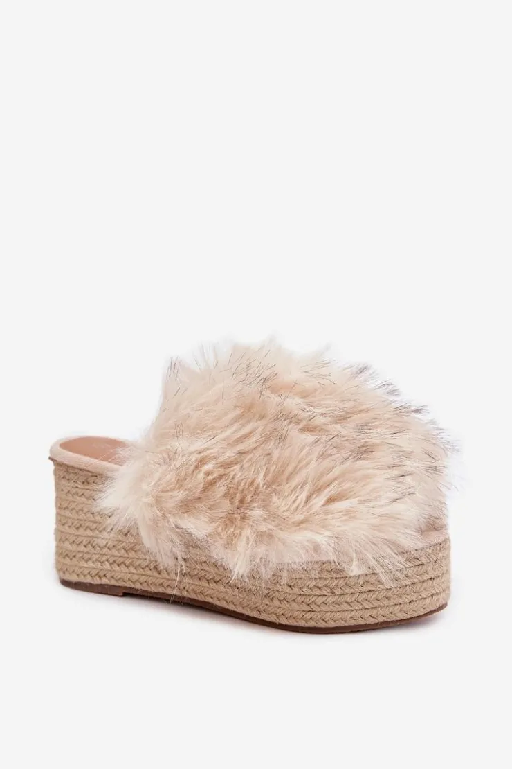 Klapki damskie z futerkiem to modny wybór na letnie dni. Osadzone na koturnie i platformie z plecionką, dodają lekkości i wakacyjnego uroku, idealnie komponując się z letnimi sukienkami, spódnicami czy szortami. Przy wyborze rozmiaru prosimy sugerować się tabelą rozmiarów.