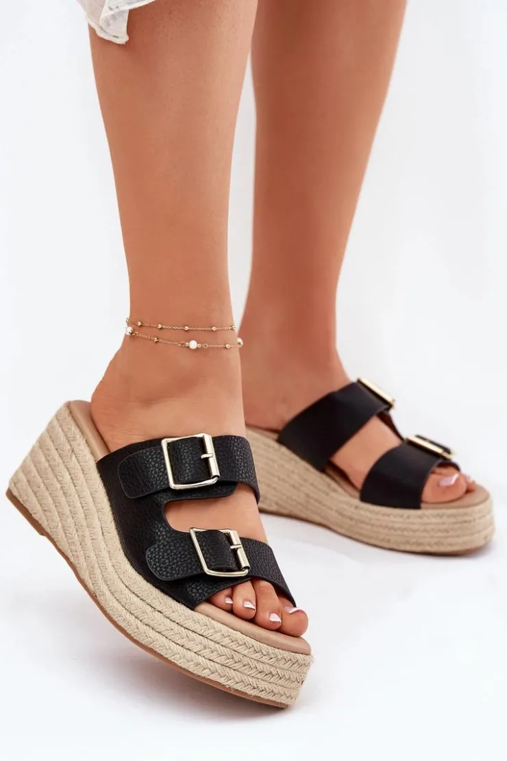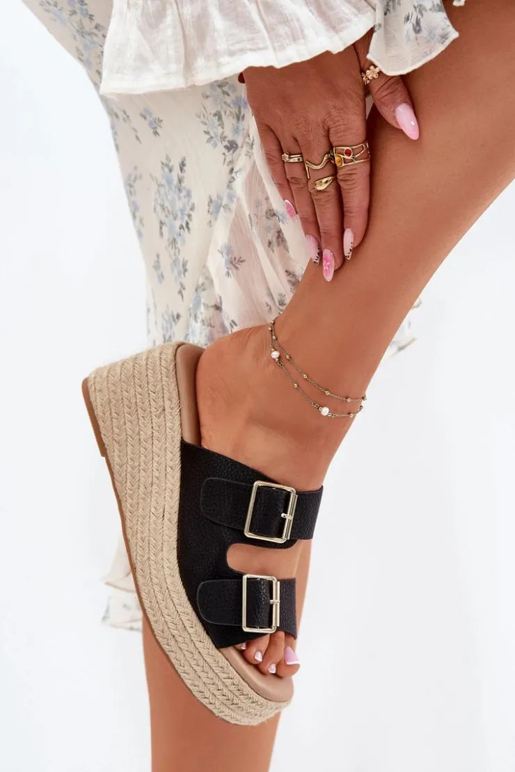 Klapki damskie z eko skóry to propozycja dla kobiet ceniących wygodę i styl. Osadzone na koturnie z modnym akcentem w postaci plecionki, prezentują się wyjątkowo letnio. Przód zdobią paski z klamrami. Miękka wkładka dodatkowo podnosi komfort noszenia. To idealny model zarówno do zwiewnych sukienek, jak i casualowych spodni. Przy wyborze rozmiaru prosimy kierować się tabelą rozmiarów.