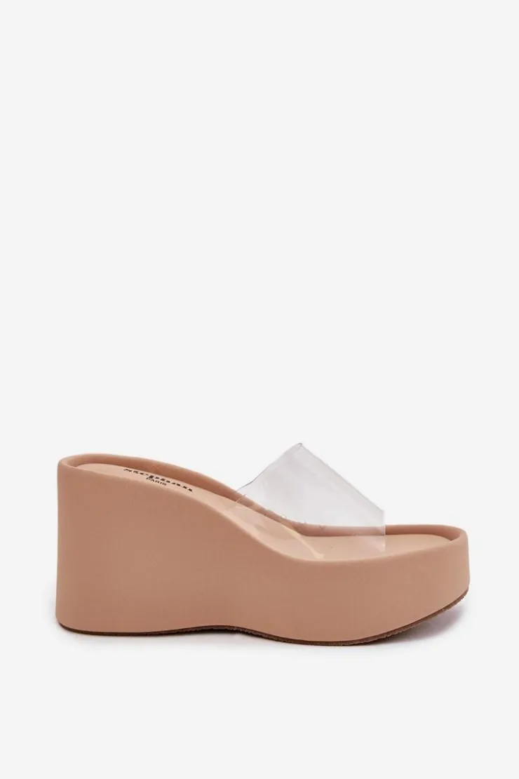 Klapki damskie z transparentnym paskiem to stylowa propozycja na ciepłe dni. Osadzone na koturnie z platformą, zapewniają wygodę i stabilność, a jednocześnie dodają lekkości. Transparentny pasek nadaje im nowoczesnego charakteru, idealnie komponując się z letnimi sukienkami czy spodniami. Idealne na codzienne użytkowanie orz wieczorne wyjścia. Przy wyborze rozmiaru prosimy sugerować się tabelą rozmiarów.