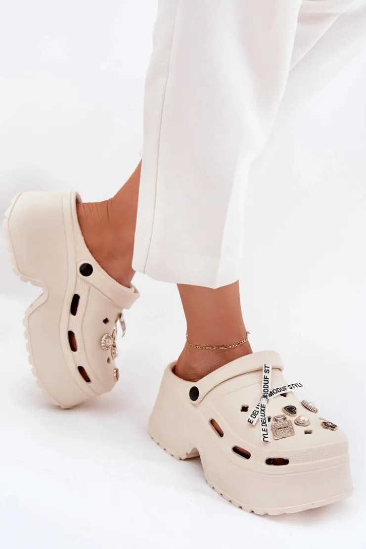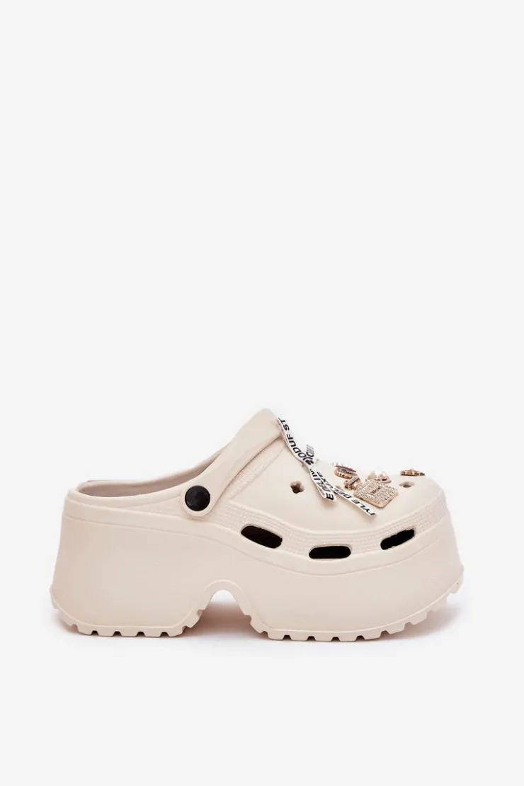 Klapki damskie piankowe na masywnej platformie, łączące komfort z nowoczesnym stylem. Dodatkowe przypinki nadają im wyjątkowego charakteru, wyróżniając je spośród innych modeli. Idealne na co dzień, zapewniają wygodę przez cały dzień, jednocześnie wpisując się w modny trend. Przy wyborze rozmiaru prosimy sugerować się tabelą rozmiarów.