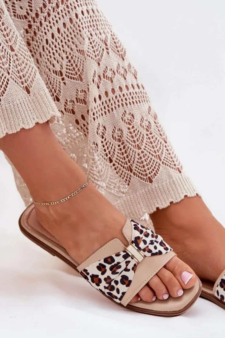 Klasyczne klapki damskie na płaskim obcasie, ozdobione uroczą kokardką z przodu, która dodaje im subtelnego uroku. Idealne do letnich sukienek, spódnic i szortów, doskonale uzupełnią każdą codzienną stylizację, zapewniając komfort i lekkość przez cały dzień. Przy wyborze rozmiaru prosimy sugerować się tabelą rozmiarów.