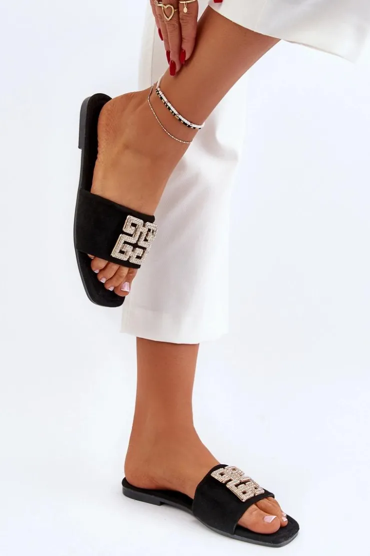 Klapki damskie osadzone na płaskim obcasie zapewniają wygodę noszenia przez cały dzień. Ozdoba z błyszczącymi cyrkoniami umieszczona z przodu dodaje im subtelnego blasku. Ten fason z pewnością podkreśli wyjątkowy charakter Twojej letniej stylizacji. Przy wyborze rozmiaru prosimy sugerować się tabelą rozmiarów.