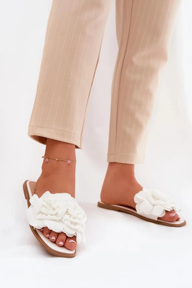 Stylowe klapki damskie wykonane z eko skóry, osadzone na płaskiej podeszwie, które łączą wygodę z delikatnym, kobiecym akcentem. Z przodu buty ozdobione są urokliwymi kwiatkami, które nadają im wyjątkowego charakteru. Idealne na ciepłe dni, te klapki doskonale komponują się z letnimi sukienkami, spódnicami czy szortami, wprowadzając do każdej stylizacji lekkość i świeżość. Przy wyborze rozmiaru prosimy sugerować się tabelą rozmiarów.