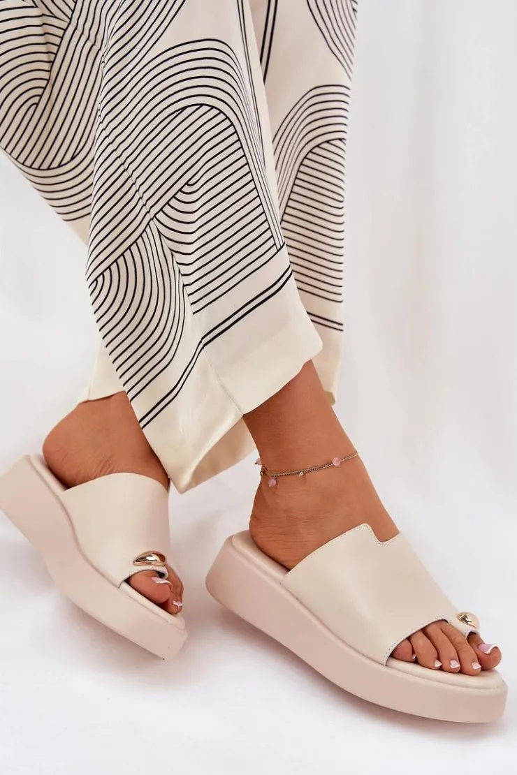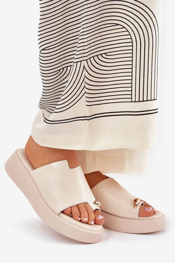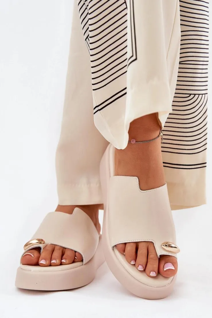 Stylowe klapki damskie z eko skóry. Osadzone na delikatnym koturnie i platformie. Miękka wkładka zapewnia wygodę przez cały dzień. Z przodu znajduje się subtelny, ozdobny detal, który dodaje wyjątkowego charakteru. Idealne na ciepłe dni, te klapki doskonale pasują do letnich sukienek, spódnic i spodni, wprowadzając lekkość do każdej stylizacji. Przy wyborze rozmiaru prosimy kierować się tabelą rozmiarów.