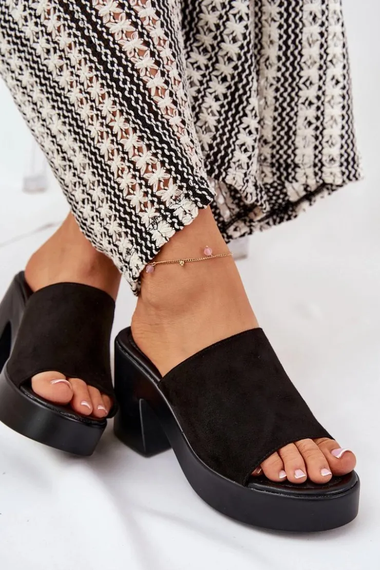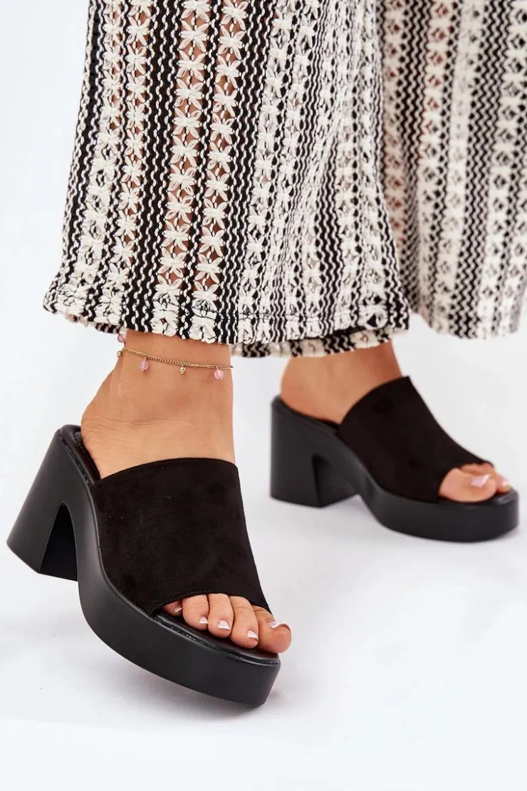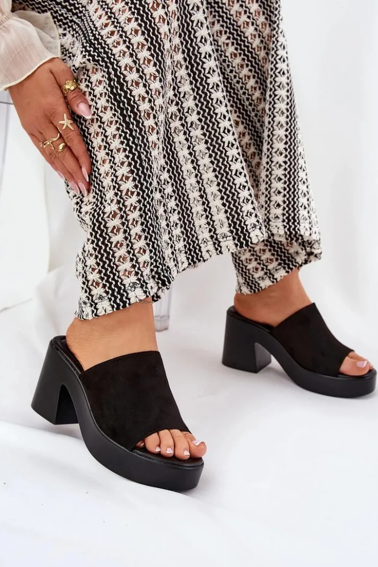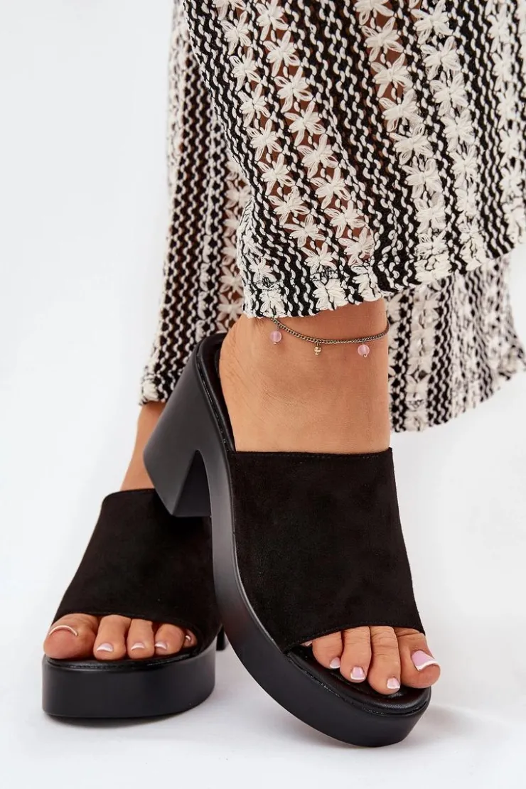 Klapki damskie na platformie i obcasie typu słupek, które łączą komfort z modnym wyglądem. Wierzch wykonany z eko zamszu, a miękka wkładka zapewnia wygodę przez cały dzień. Klasyczny fason sprawia, że te klapki doskonale pasują do wielu letnich stylizacji, dodając elegancji i lekkości każdemu lookowi. Idealne na codzienne wyjścia i specjalne okazje. Przy wyborze rozmiaru prosimy sugerować się tabelą rozmiarów.
