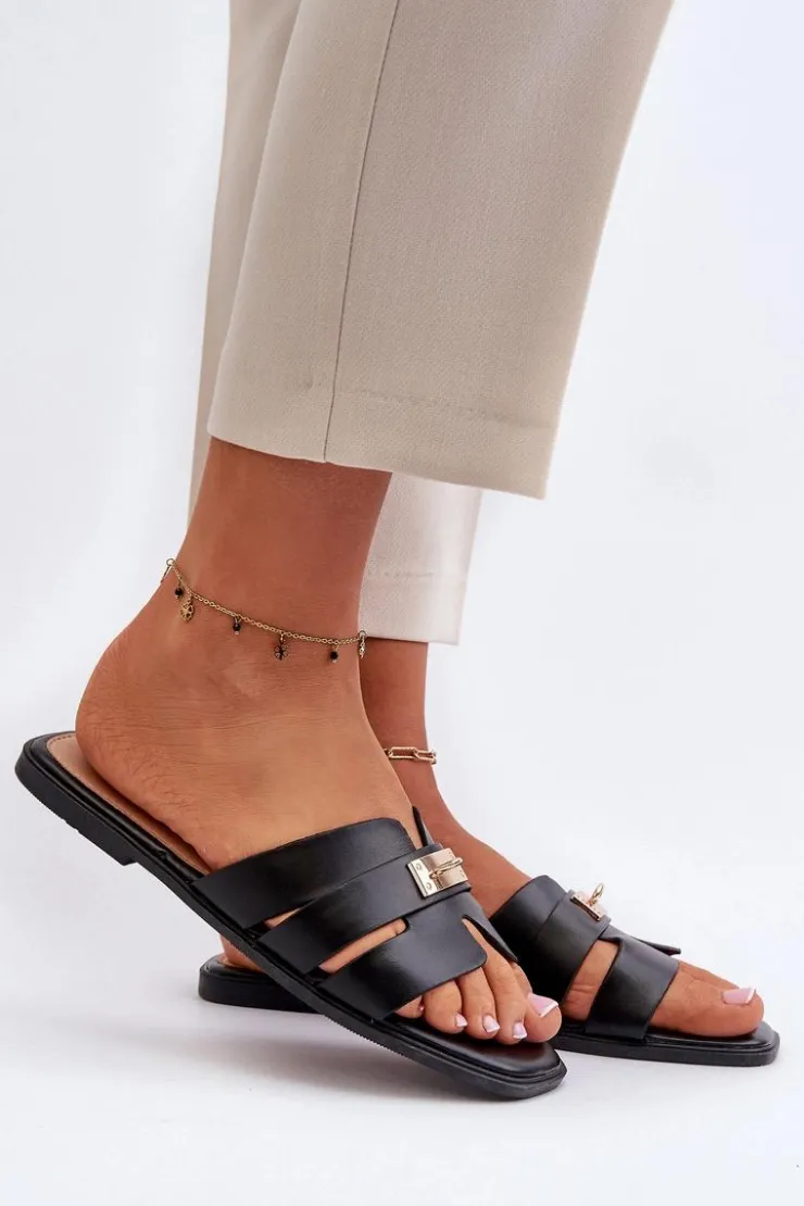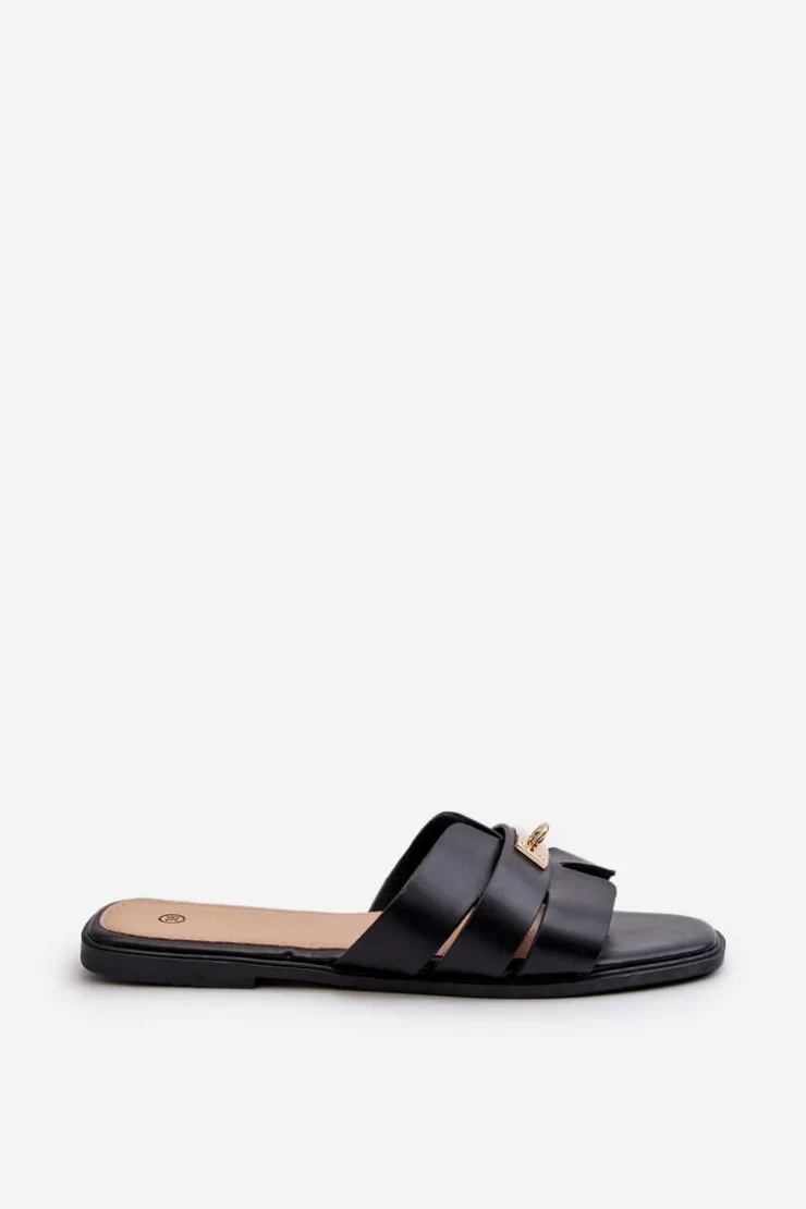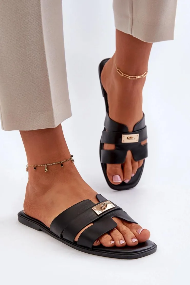 Stylowe i płaskie klapki damskie są idealnym wyborem na upalne dni. Wykonane z eko skóry. Z przodu delikatna złota ozdoba, która dodaje im elegancji i wyjątkowego charakteru. Te klasyczne klapki nie tylko świetnie prezentują się, ale także są komfortowe i praktyczne na co dzień, doskonale uzupełniając letnią garderobę. Przy wyborze rozmiaru prosimy sugerować się tabelą rozmiarów.
