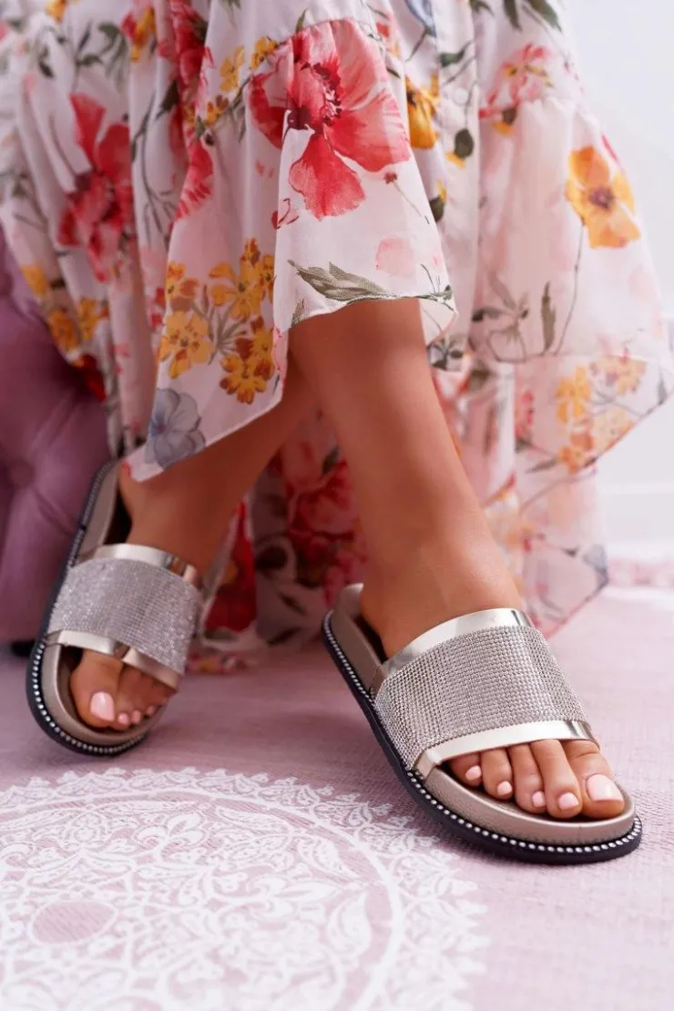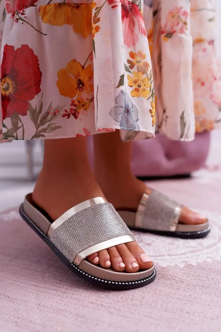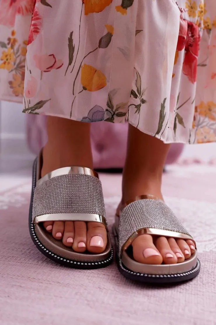 Damskie Boto Klapki Damskie Profilowane Z Cyrkoniami Złote Rentre