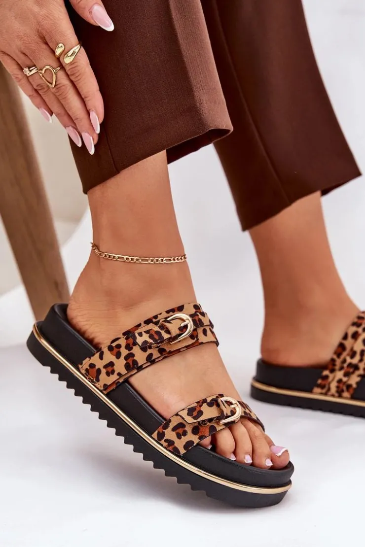 Modne klapki damskie na platformie, które łączą wygodę z nowoczesnym wyglądem. Z przodu znajdują się dwa paski z klamrami, które dodają charakteru i subtelnie przyciągają uwagę. Platforma zapewnia pewność kroku i stabilność przez cały dzień. Idealne na co dzień, doskonale pasują zarówno do sukienek, jak i spodni, tworząc uniwersalny element każdej letniej stylizacji. Przy wyborze rozmiaru rosimy sugerować się tabelą rozmiarów.