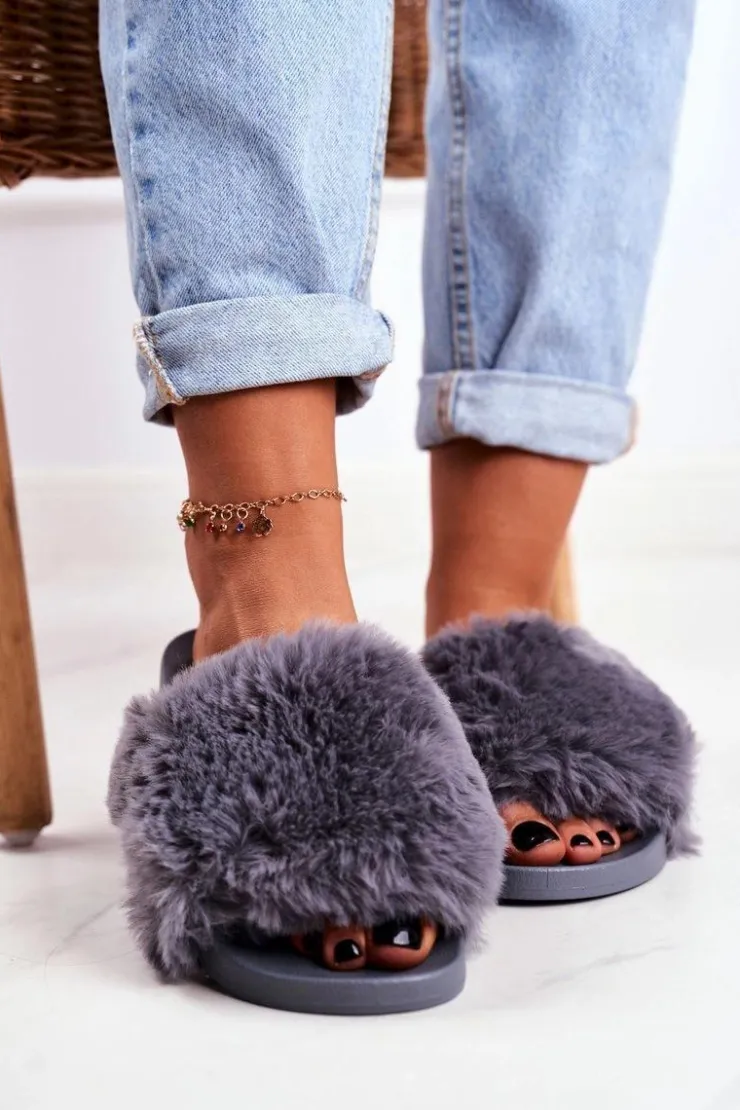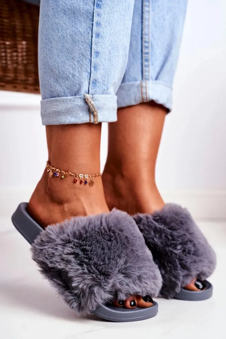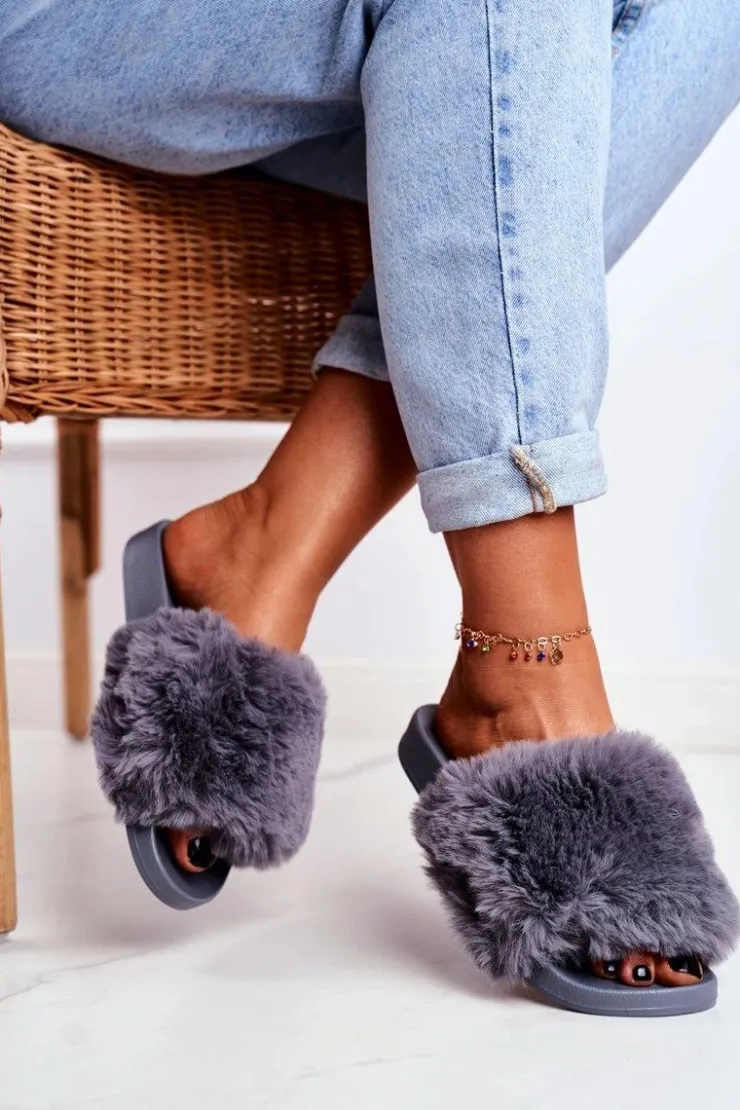 Damskie Boto Klapki Damskie Z Futerkiem Szare Sensitive