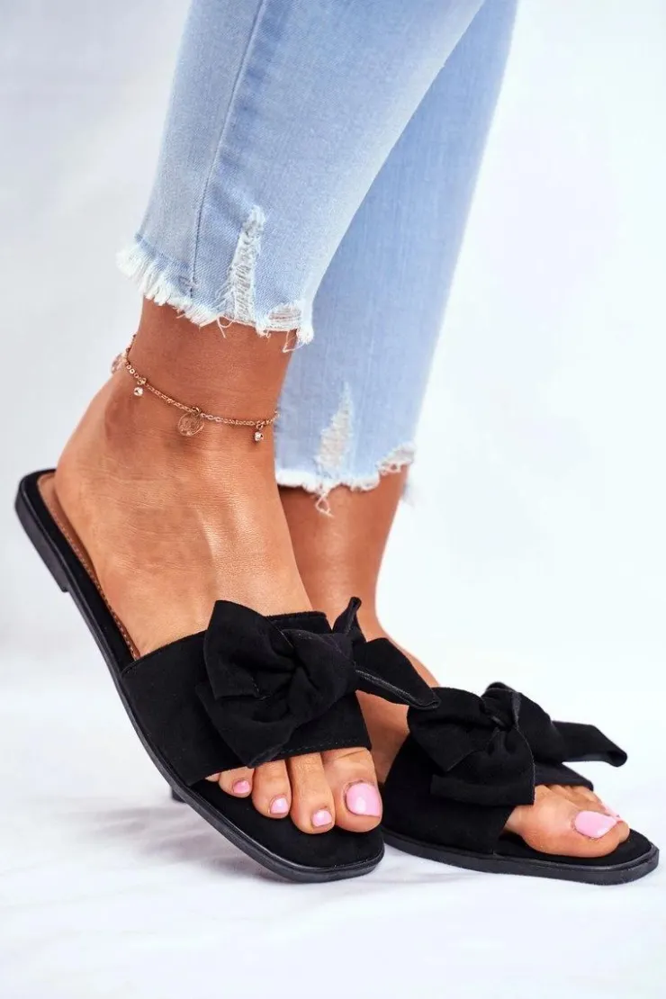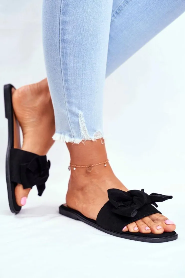 Damskie Boto Klapki Damskie Z Kokardkami Czarne Malaysia