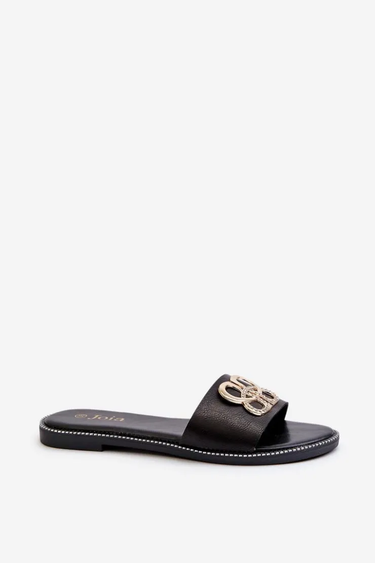 Damskie Boto Klapki Damskie Z Ozdobą Eko Skórzane Na Płaskim Obcasie Czarne Sadria