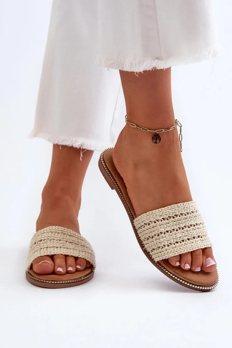 Klasyczne klapki damskie na płaskim obcasie to niezawodny wybór na letnie dni. Prosty design sprawia, że doskonale pasują do wielu letnich stylizacji. Z przodu szeroki pasek z plecionką. Te klapki są doskonałym wyborem dla kobiet ceniących zarówno styl, jak i komfort. Przy wyborze rozmiaru prosimy sugerować się tabelą rozmiarów.