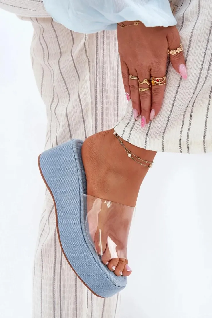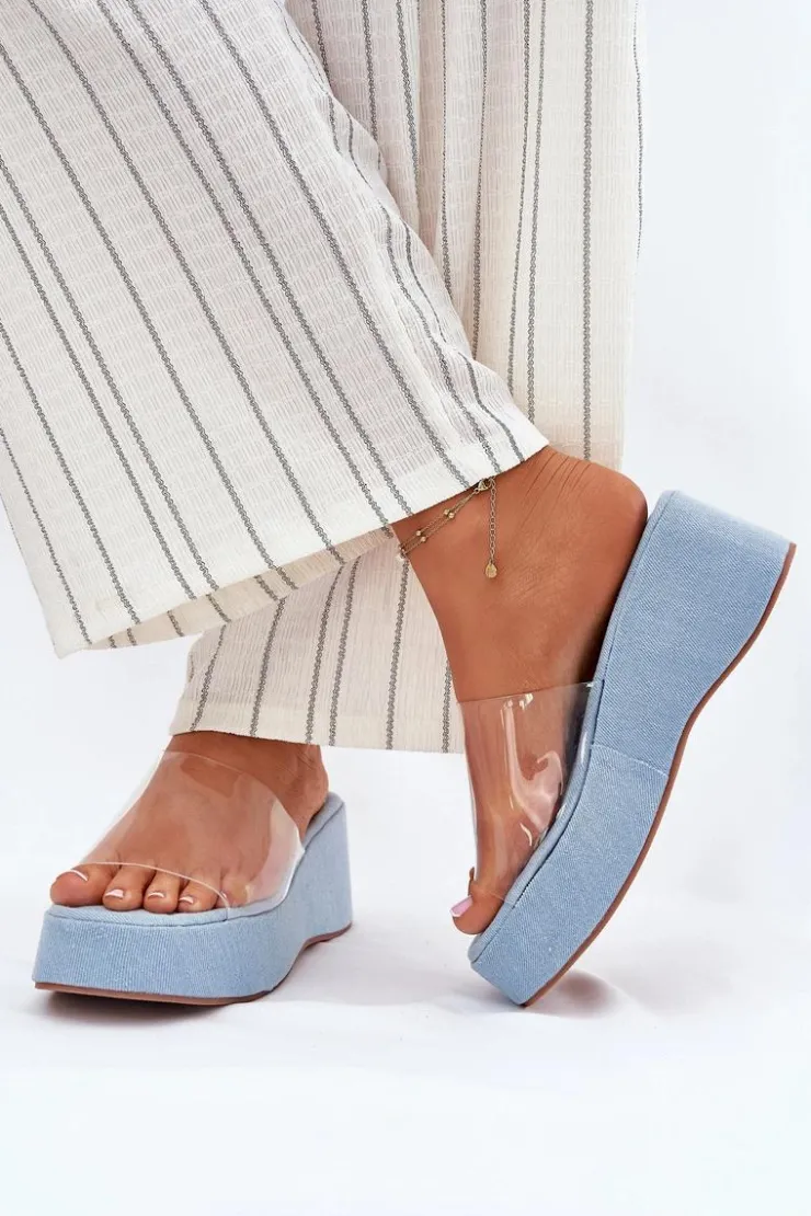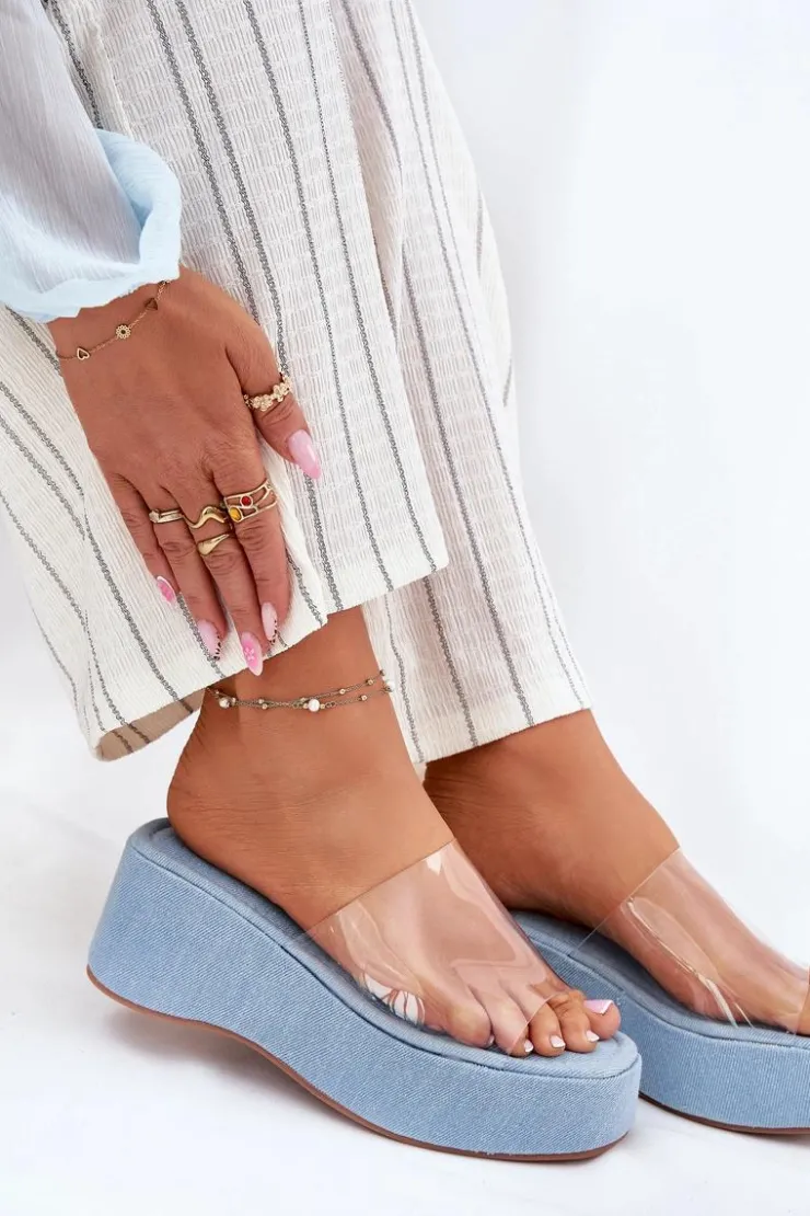 Damskie klapki z transparentnym paskiem to połączenie nowoczesnego stylu i wygody. Model ten został osadzony na koturnie, który subtelnie wysmukla sylwetkę, a jednocześnie zapewnia stabilność podczas chodzenia. Miękka wkładka gwarantuje komfort nawet podczas długiego użytkowania. Te klapki świetnie uzupełnią zarówno codzienne, jak i bardziej eleganckie letnie stylizacje. Przy wyborze rozmiaru prosimy sugerować się tabelą rozmiarów.