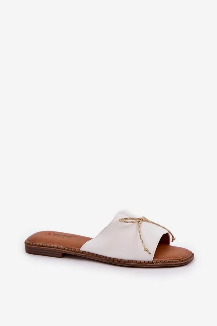 Damskie Boto Klapki Na Płaskiej Podeszwie Z Ozdobną Kokardką Białe Deonelis