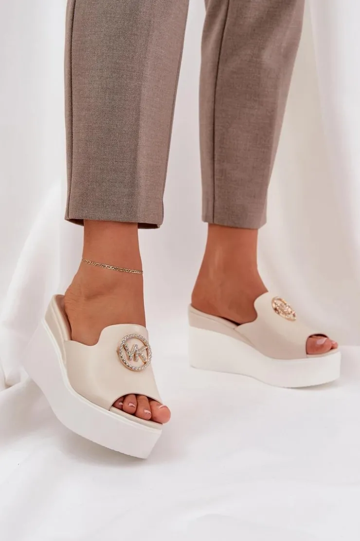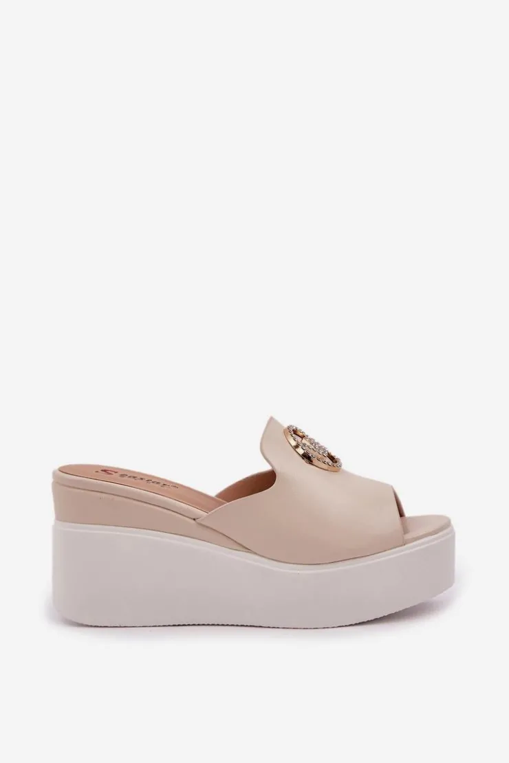 Damskie Boto Klapki Na Platformie I Koturnie Z Ozdobą Jasnobeżowe Nanessia