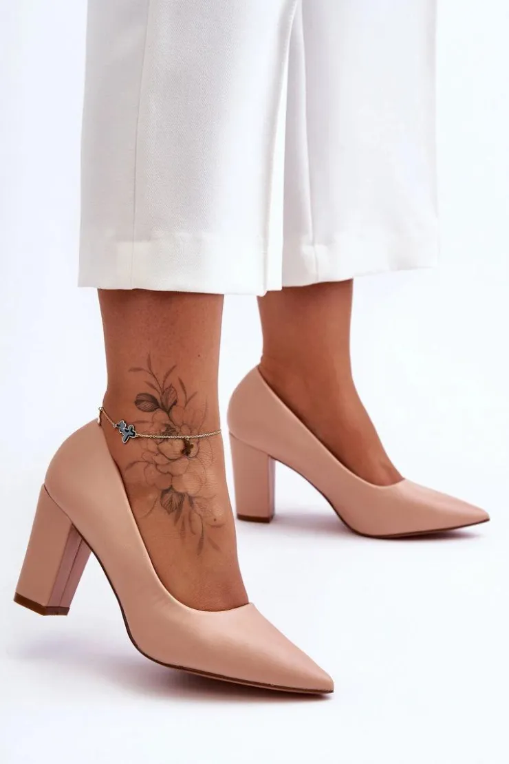 Klasyczne czółenka zostały osadzone na obcasie w postaci stabilnego słupka. Zostały wykonane z eko skóry. Miękka wkładka z delikatną perforacją zapewni komfortowe użytkowanie. Charakterystyczny nosek w szpic optycznie wysmukli nogi. Ten model jest idealny na wiele okazji! Przy wyborze rozmiaru prosimy sugerować się tabelą rozmiarów.
