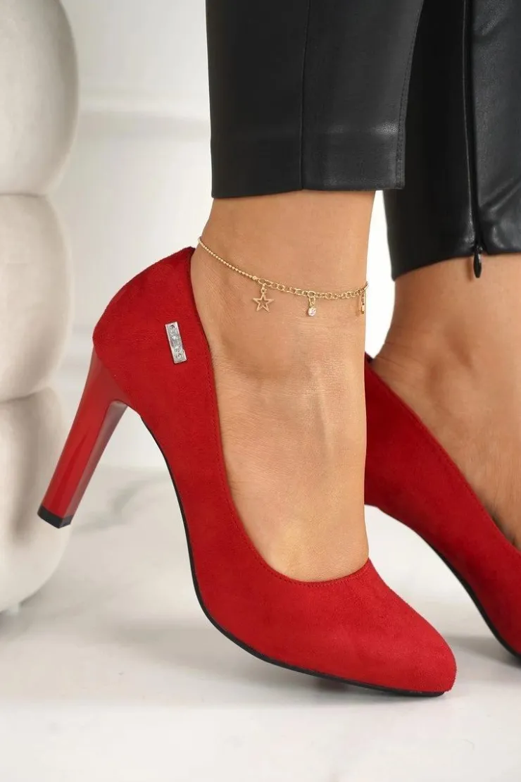 Damskie Boto Klasyczne Czółenka Na Słupku Zamszowe Czerwone Eliana