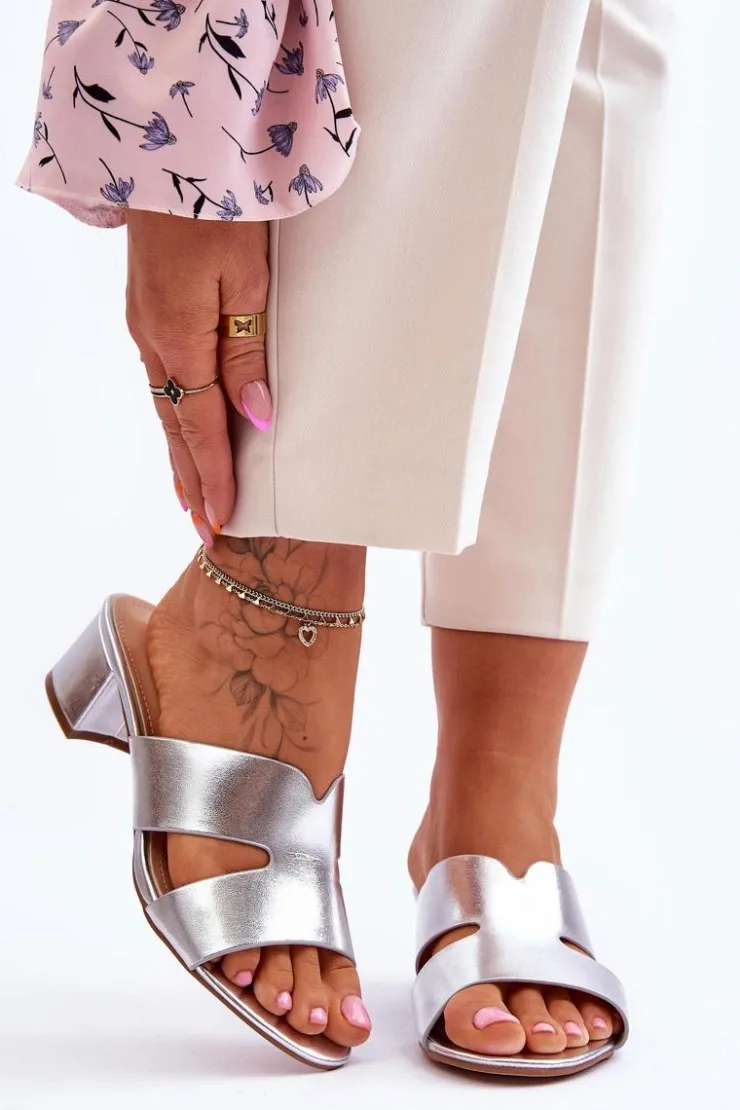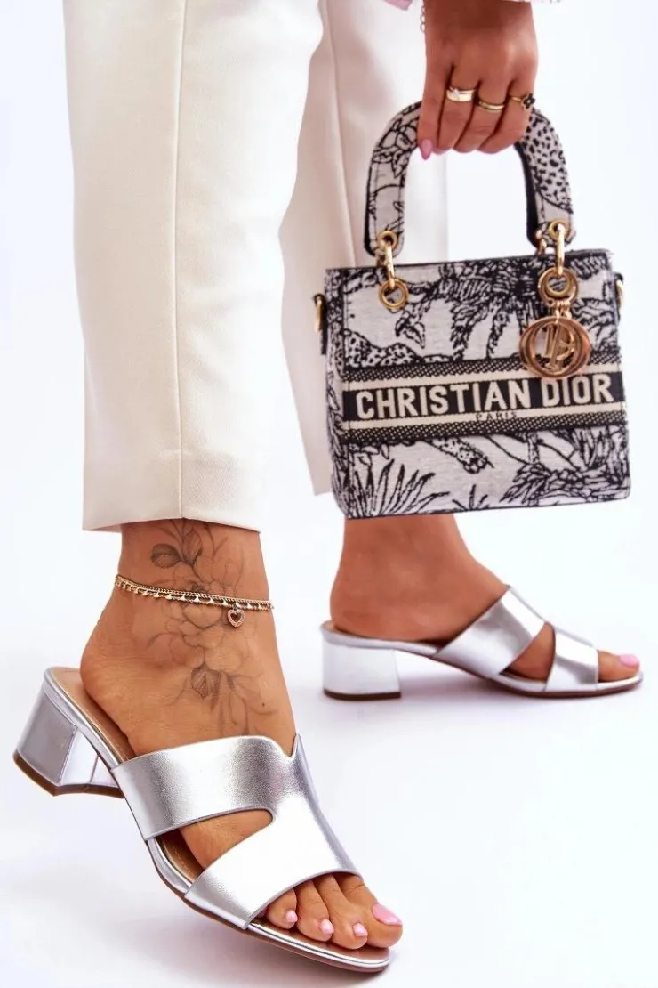 Klasyczne klapki na obcasie wykonane w całości z eko skóry. Posiadają wycięcia z boku cholewki. Miękka wkładka zapewni wygodę nawet przez cały dzień. Prosty, klasyczny fason osadzony na niskim słupku. Klapki te posiadają odkryty, zaokrąglony nosek. Ten moden świetnie sprawdzi się w wielu stylizacjach. Przy wyborze rozmiaru prosimy kierować się tabelą rozmiarów.