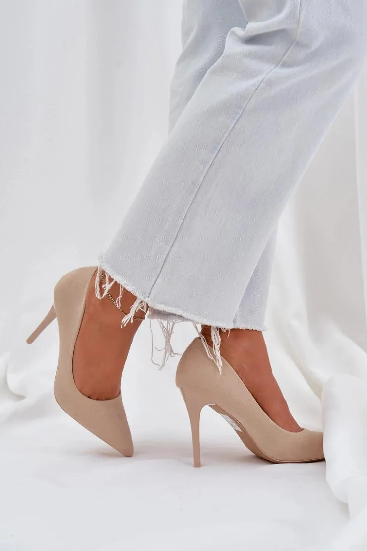 Damskie Boto Klasyczne Szpilki Z Eko Zamszu Jasnobeżowe Navinda