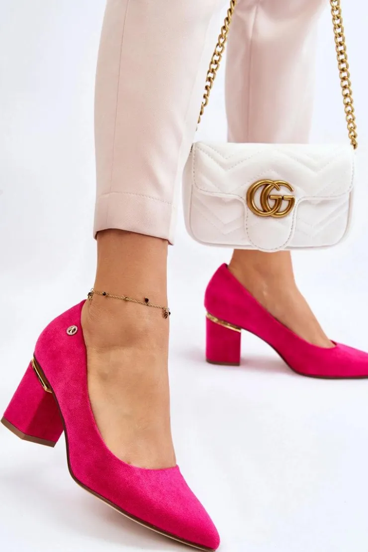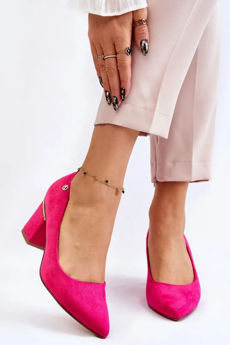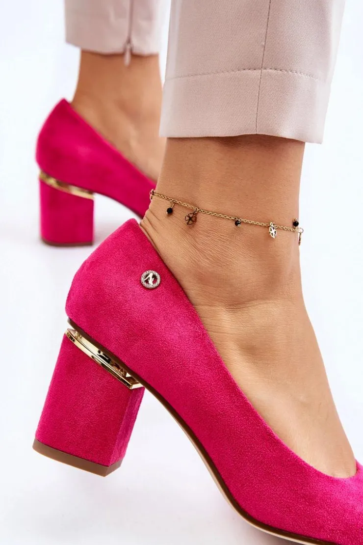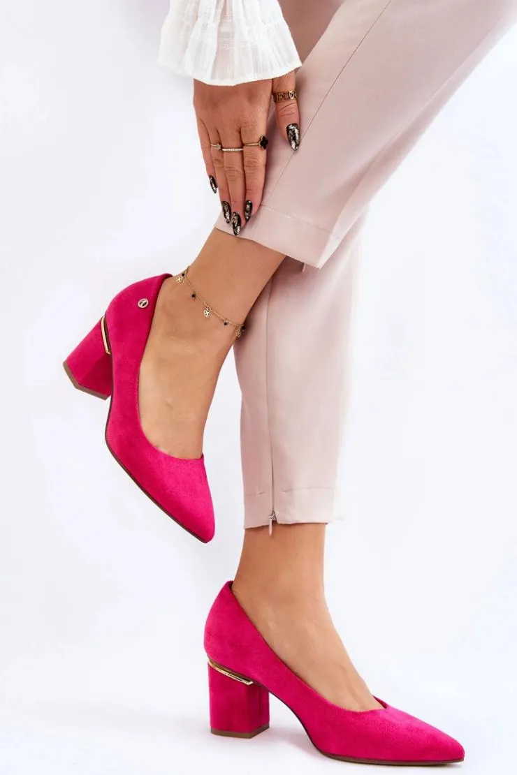 Damskie Boto Klasyczne Zamszowe Czółenka Na Obcasie Z Ozdobą Fuksja Derren