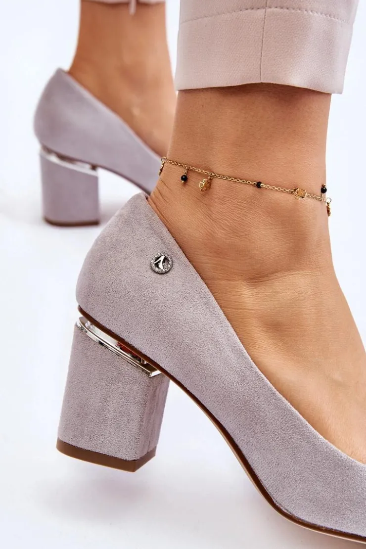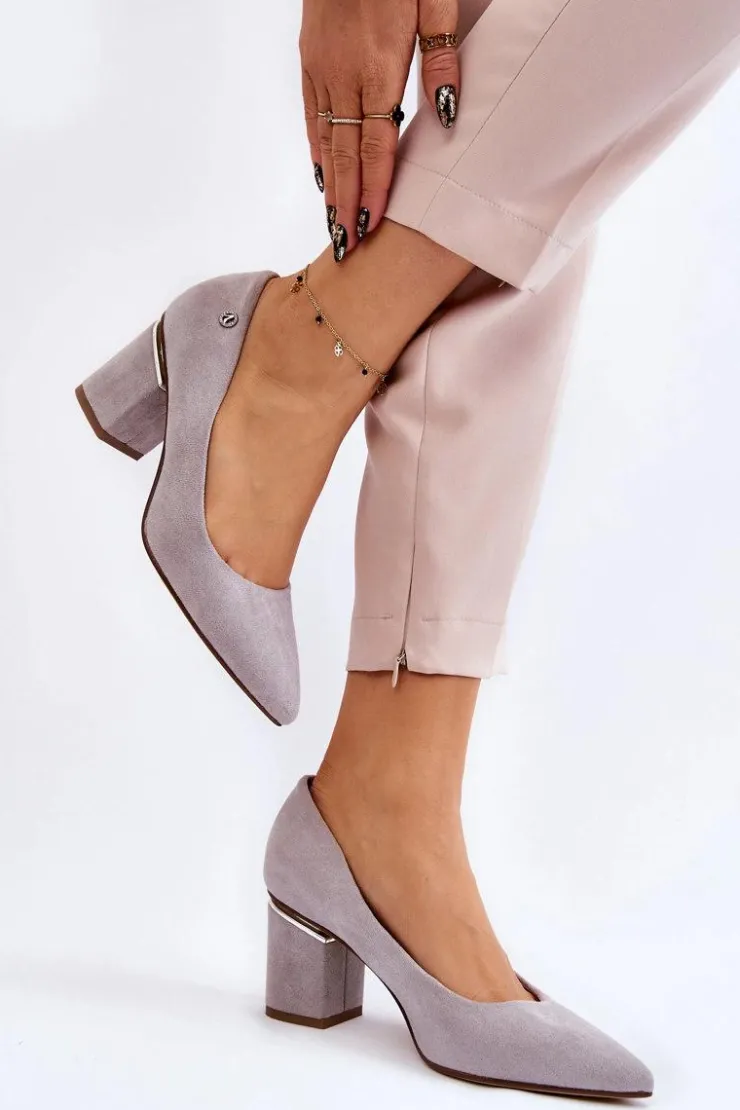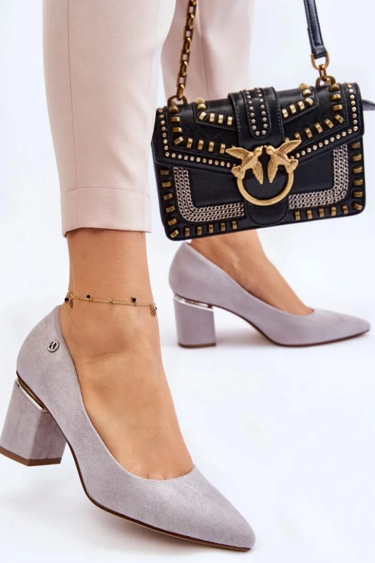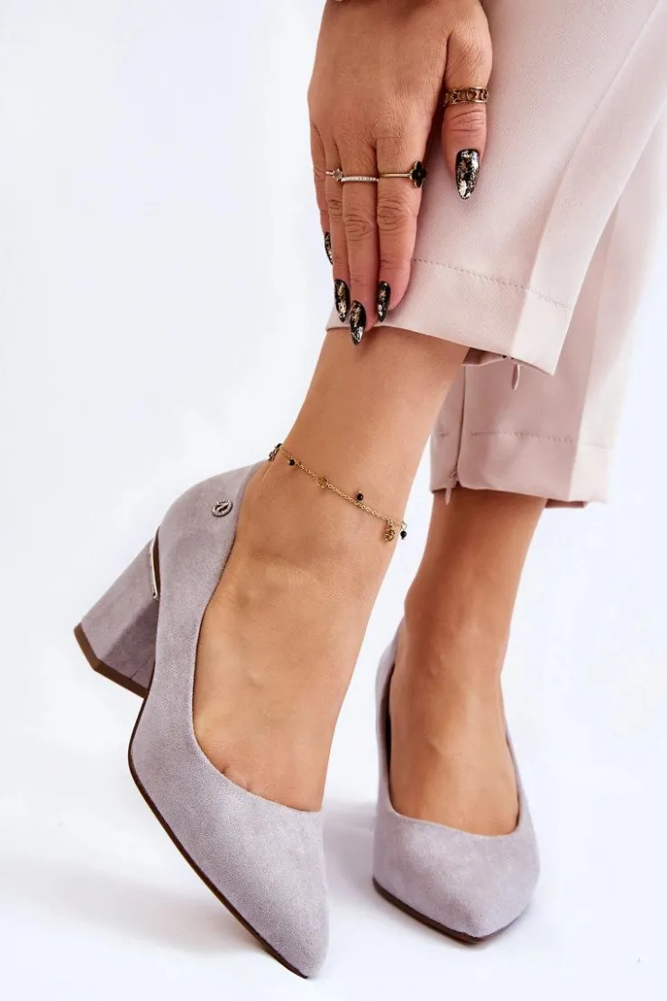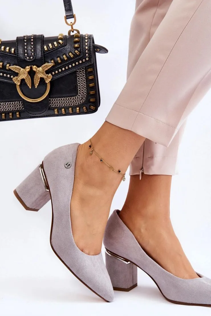 Damskie Boto Klasyczne Zamszowe Czółenka Na Obcasie Z Ozdobą Szare Derren