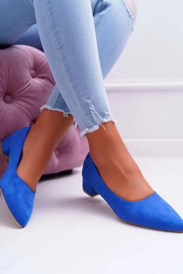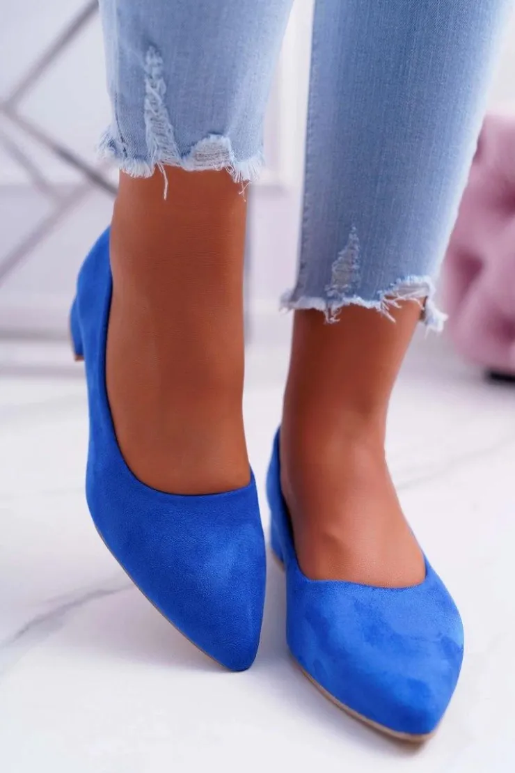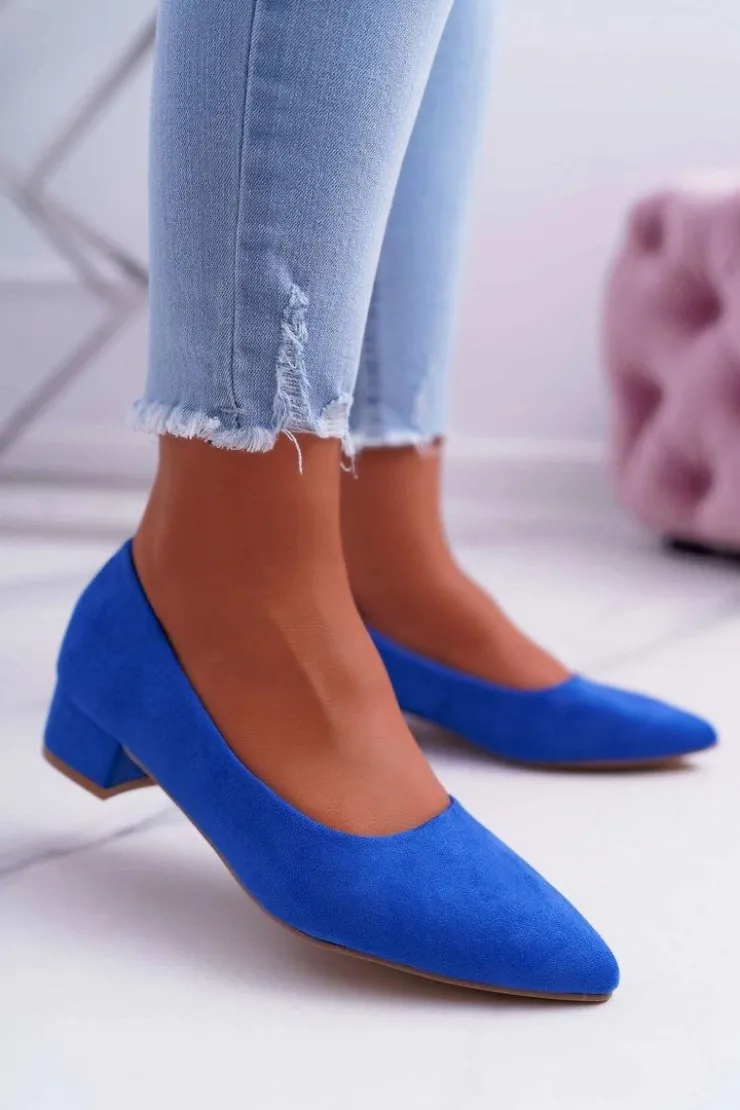 Czółenka na niskim obcasie wykonane z eko zamszu. Modny fason dostępny w wielu pięknych kolorach! Przy wyborze rozmiaru prosimy kierować się tabelą rozmiarów