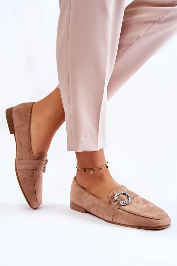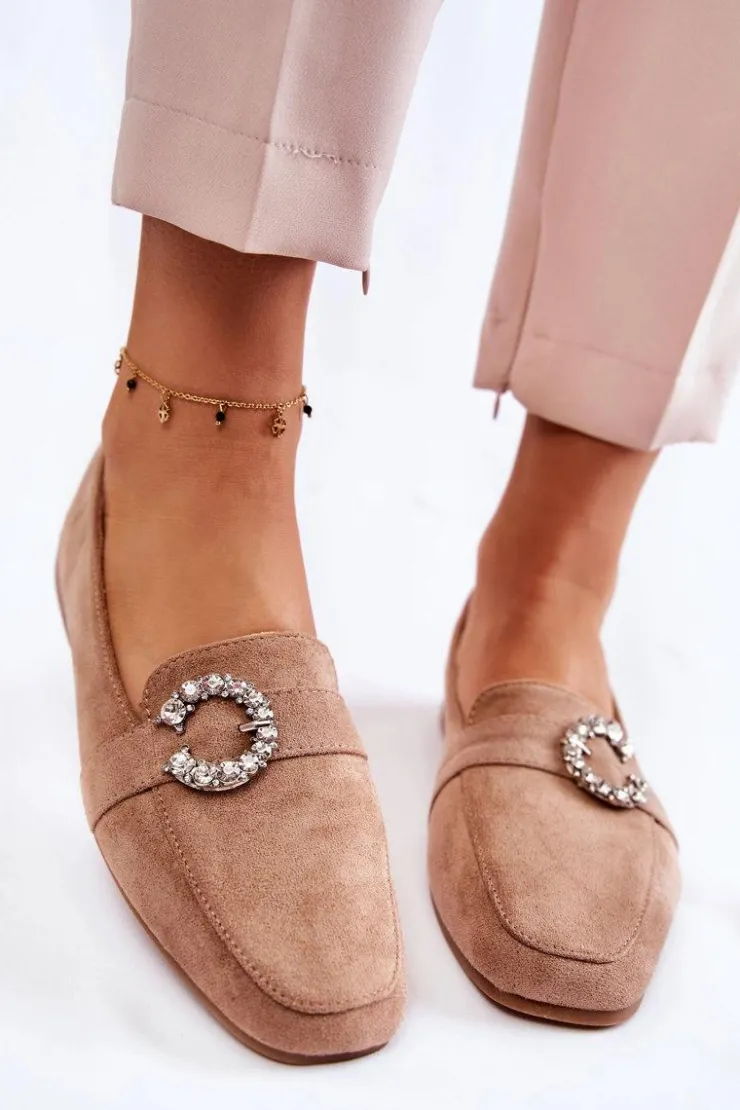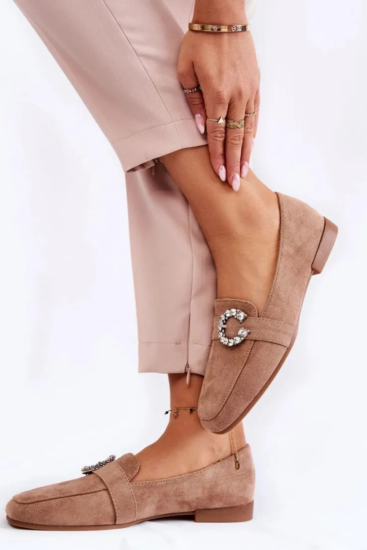 Klasyczne mokasyny zostały wykonane z miłego w dotyku eko zamszu. Posiadają ozdobę na przodzie w postaci klamry z cyrkoniami. Nosek kwadratowy. Mokasyny zostały osadzone na płaskim obcasie z antypoślizgową podeszwą. Miękka wkładka wykonana z eko skóry zapewni komfort podczas użytkowania. Ten model świetnie sprawdzi się do pracy czy na spotkania ze znajomymi. Przy wyborze rozmiaru prosimy sugerować się tabelą rozmiarów.