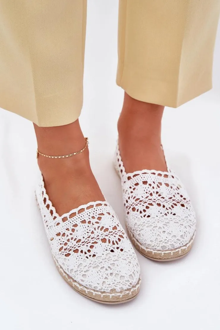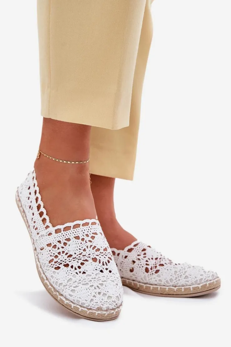 Koronkowe espadryle damskie. Wykonane z delikatnej koronki, idealnie komponują się z letnimi stylizacjami. Miękka eko skórzana wkładka zapewnia komfort przez cały dzień, a plecionka przy podeszwie dodaje im uroku i wakacyjnego charakteru. Doskonałe na codzienne wyjścia, spacery czy wakacyjne wyjazdy. Przy wyborze rozmiaru prosimy sugerować się tabelą rozmiarów.
