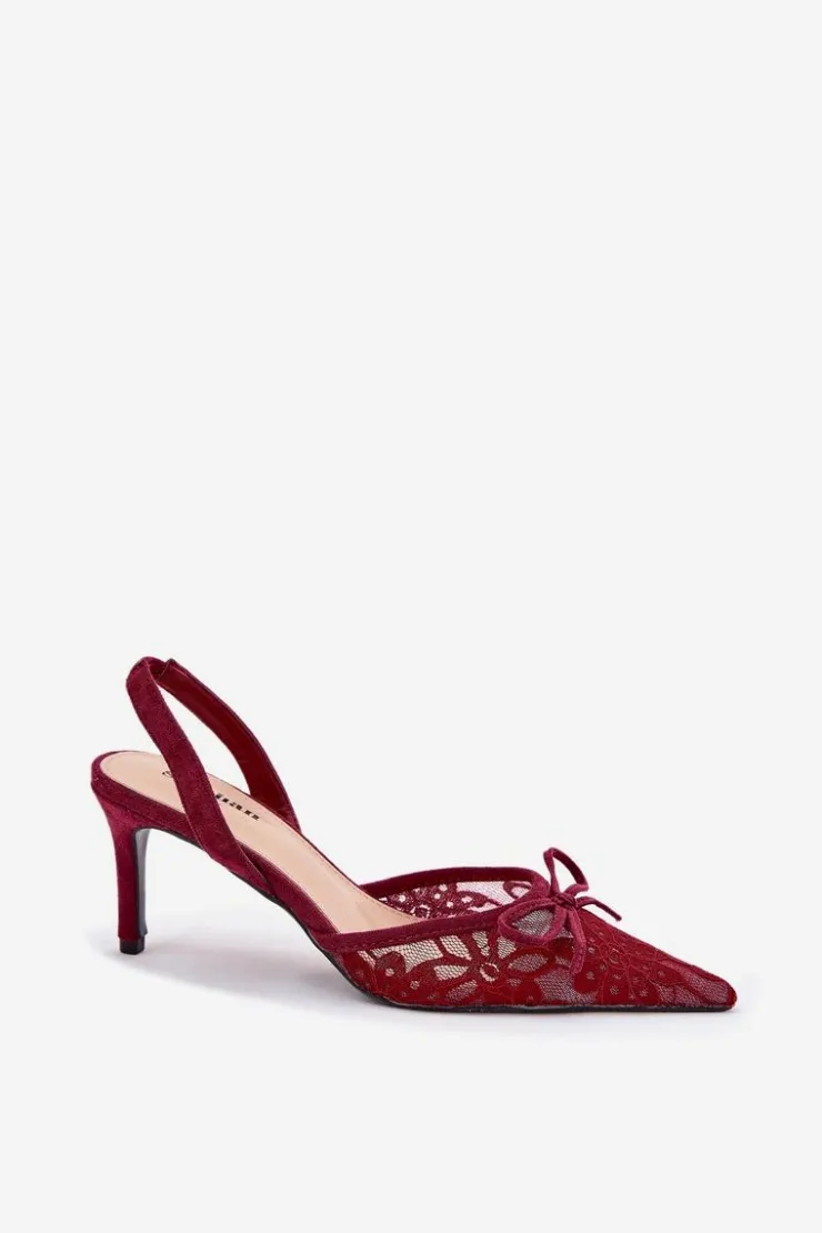 Koronkowe szpilki damskie to elegancka propozycja na wyjątkowe okazje. Model z odkrytą piętą i szpiczastymi noskami podkreśla smukłość sylwetki, a subtelna kokardka dodaje im delikatnego uroku. Idealne na wieczorne wyjścia czy formalne uroczystości, łączą stylowy wygląd z kobiecym wdziękiem. Przy wyborze rozmiaru prosimy sugerować się tabelą rozmiarów.