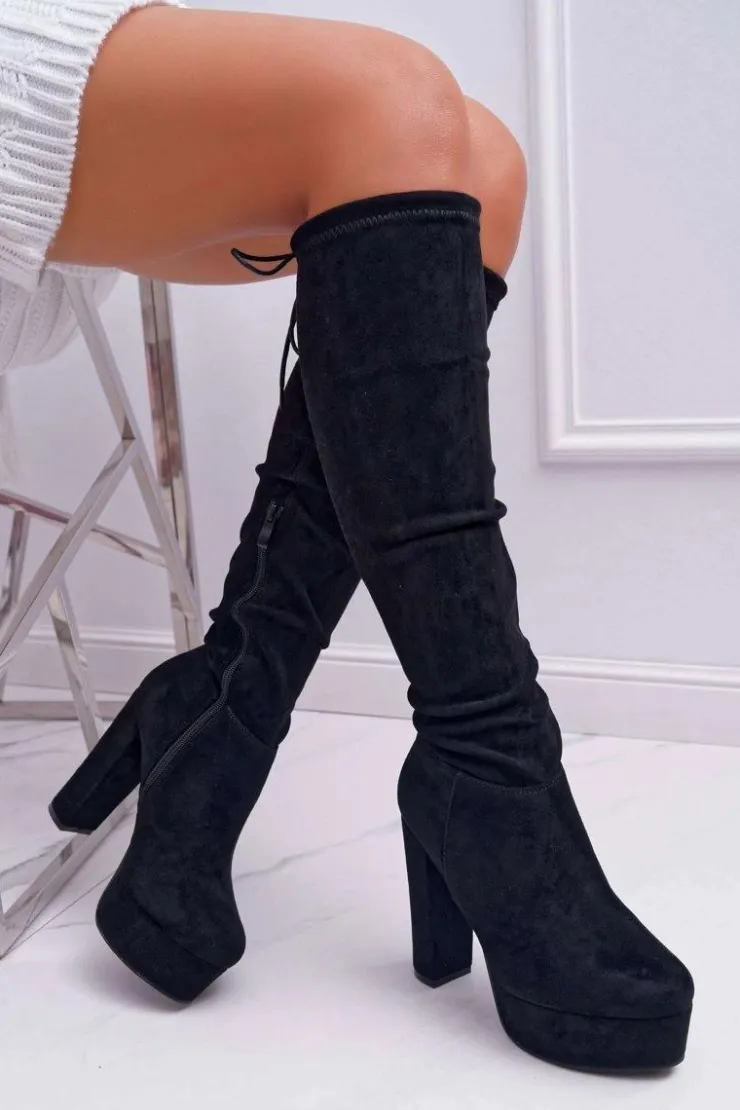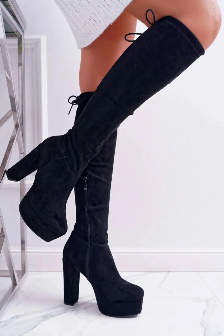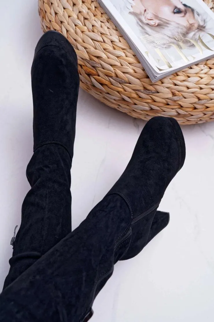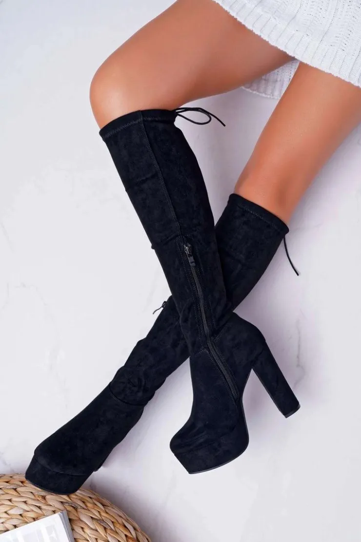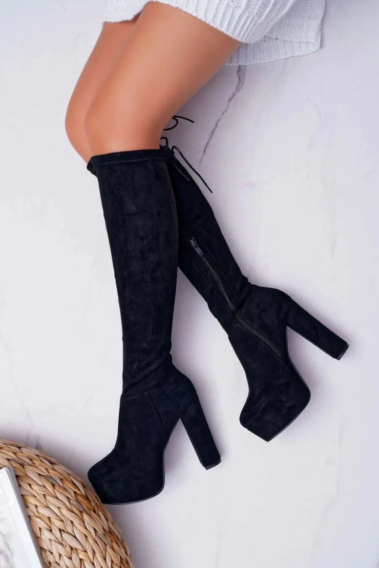 Damskie Boto Kozaki Damskie Na Słupku Czarne Kontiga