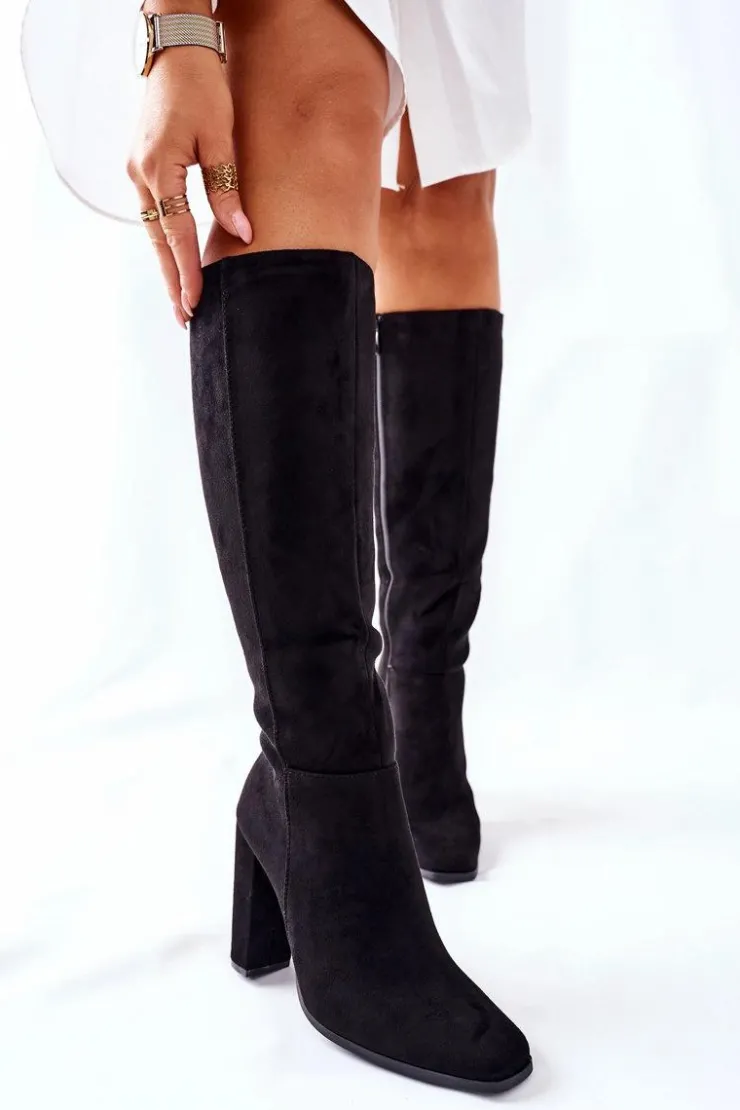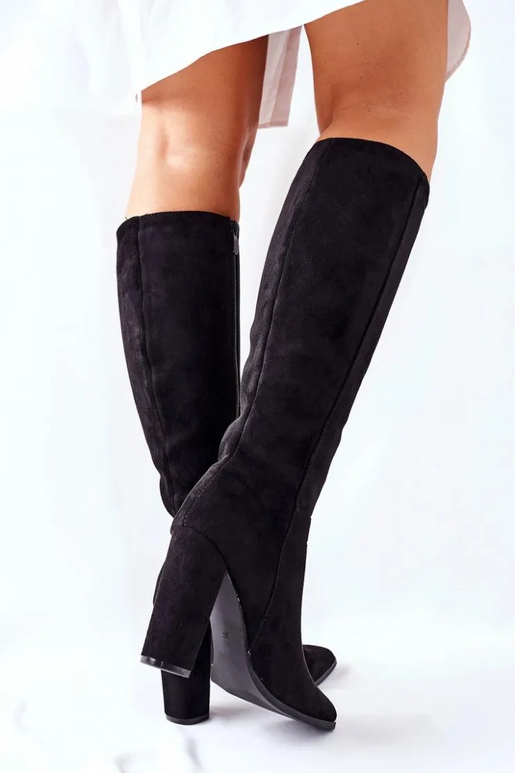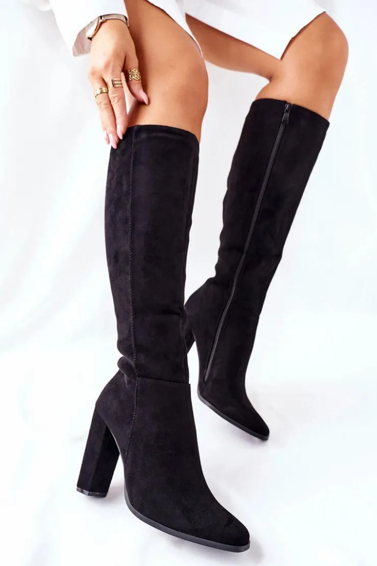 Modne, stylowe damskie kozaki, które podbiją serca każdej fanki mody. Kozaki zostały wykonane z ekologicznego zamszu, który łączy się idealnie z wieloma stylizacjami. Wnętrze pokryte, ciepłym i miłym w dotyku kocem obuwniczym. Suwak po wewnętrznej stronie ułatwi zakładanie. Przy wyborze rozmiaru prosimy kierować tabelą rozmiarów.