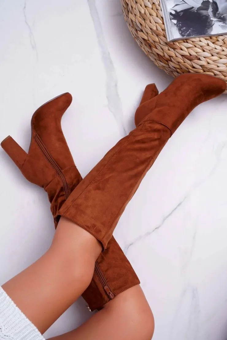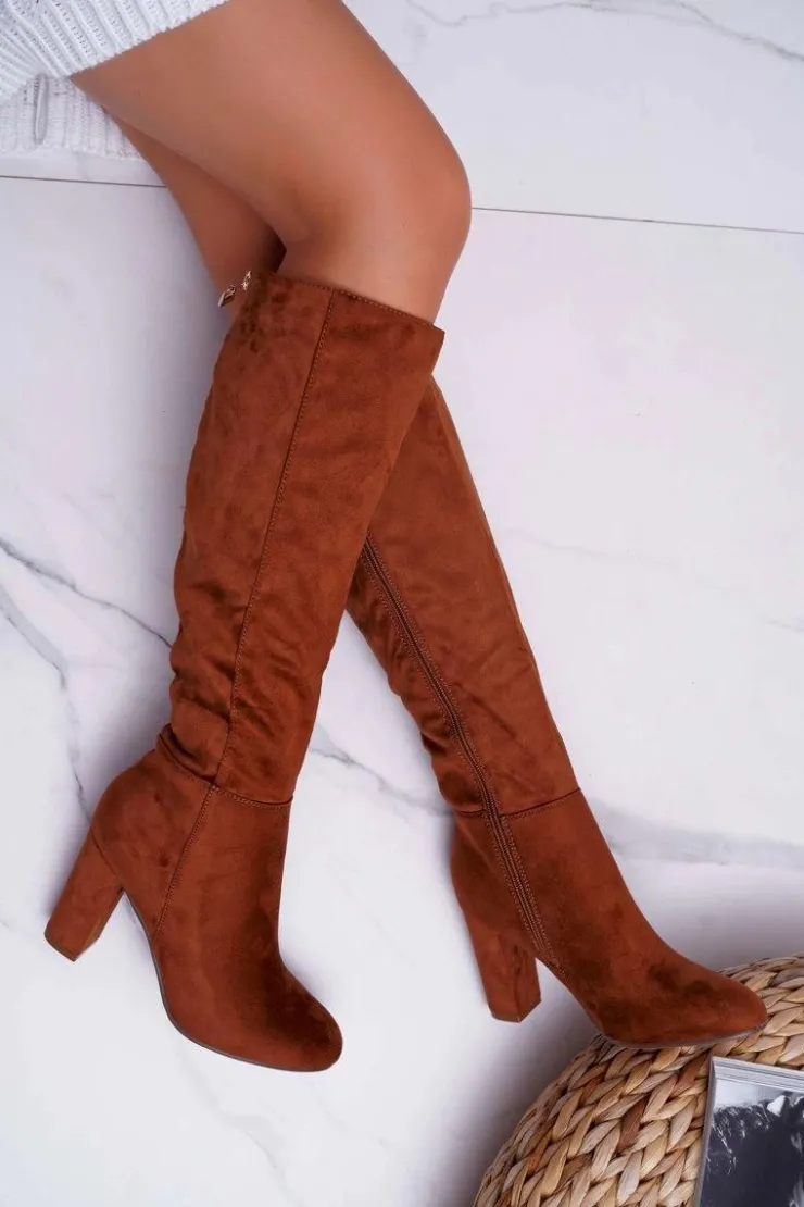 Damskie Boto Kozaki Damskie Na Słupku Zamszowe Camel Classy