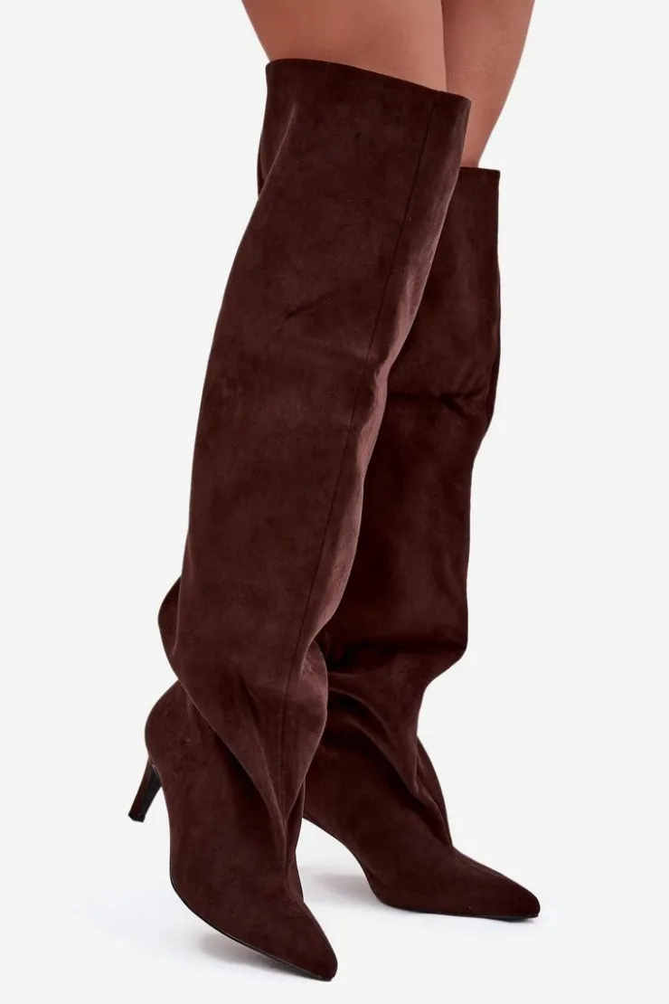 Kozaki damskie na szpilce wsuwane czekoladowe Mavilla