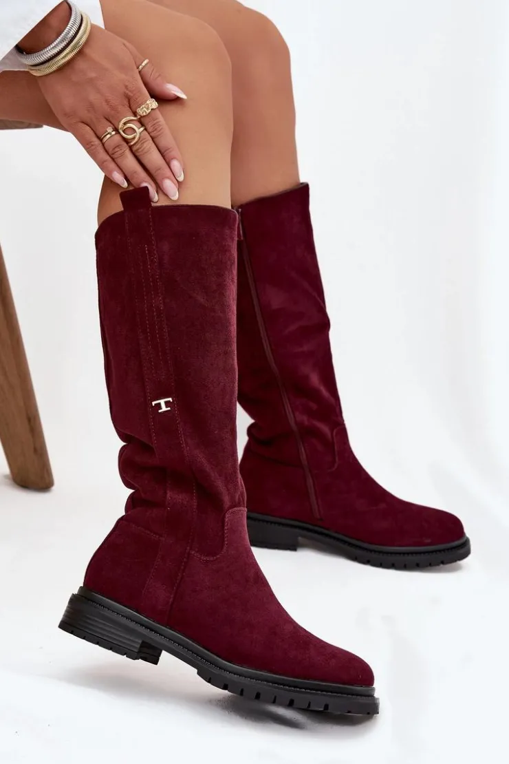 Kozaki damskie na płaskim obcasie to praktyczna i stylowa propozycja na zimowe dni. Model zapinany na zamek ułatwia szybkie zakładanie, a wnętrze ocieplone miękkim kocem obuwniczym gwarantuje ciepło i komfort nawet w najchłodniejsze dni. Delikatny, złoty detal w postaci litery „T” umieszczony po boku cholewki dodaje subtelnego, eleganckiego akcentu, dzięki czemu kozaki doskonale sprawdzą się w codziennych zimowych stylizacjach. Przy wyborze rozmiaru prosimy sugerować się tabelą rozmiarów.