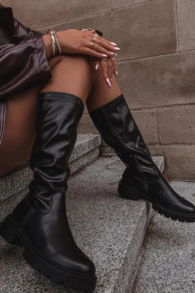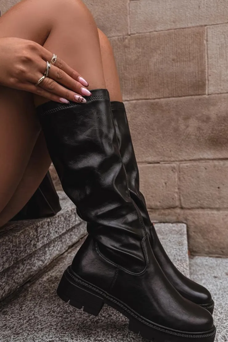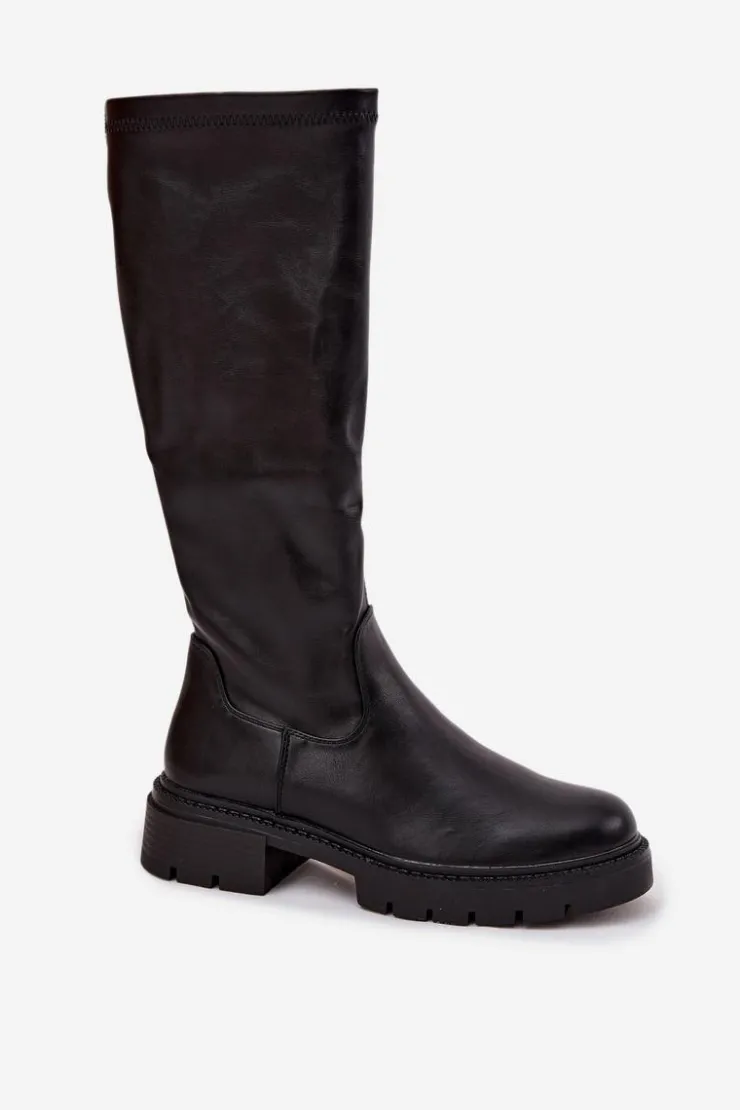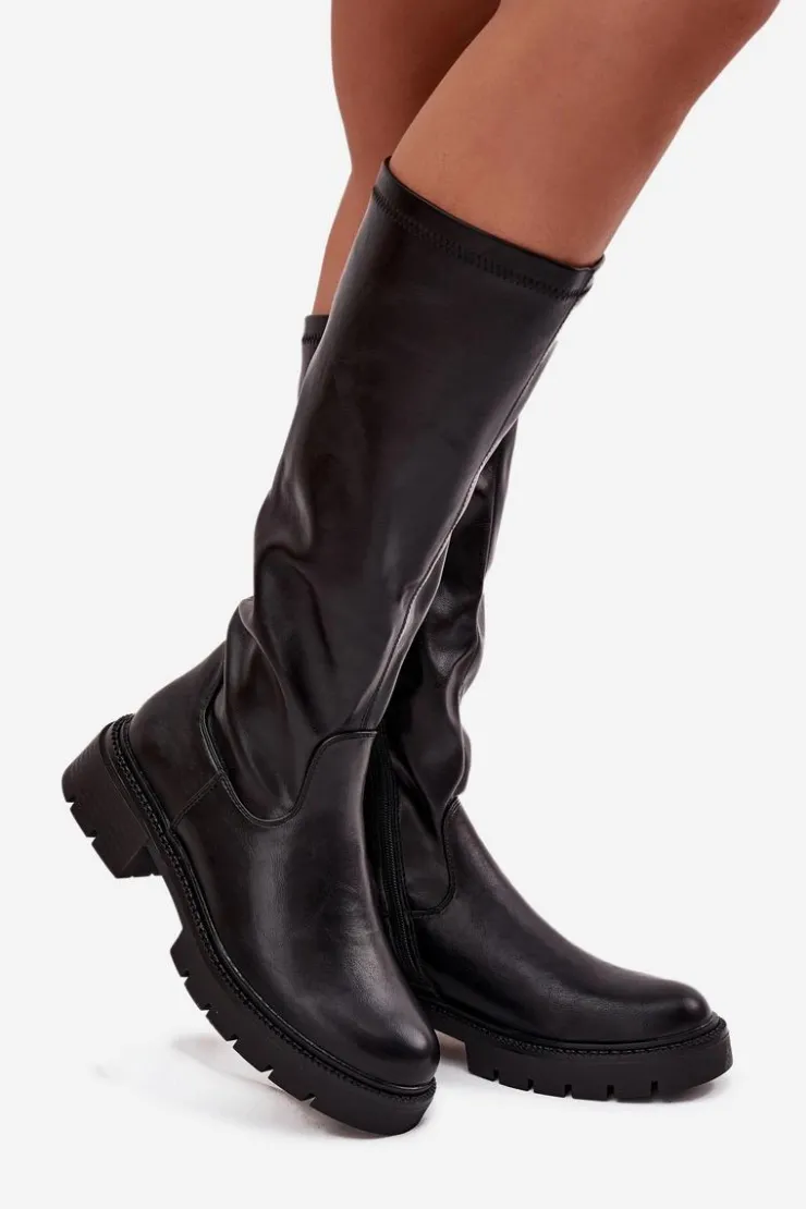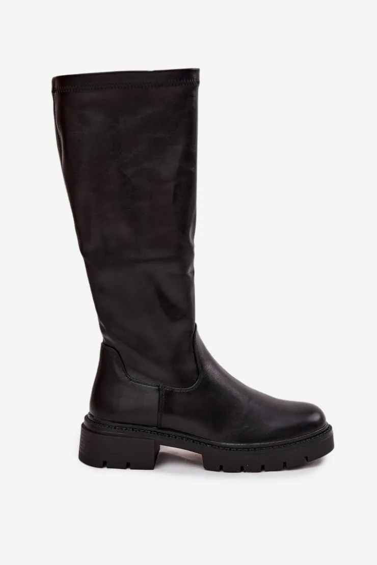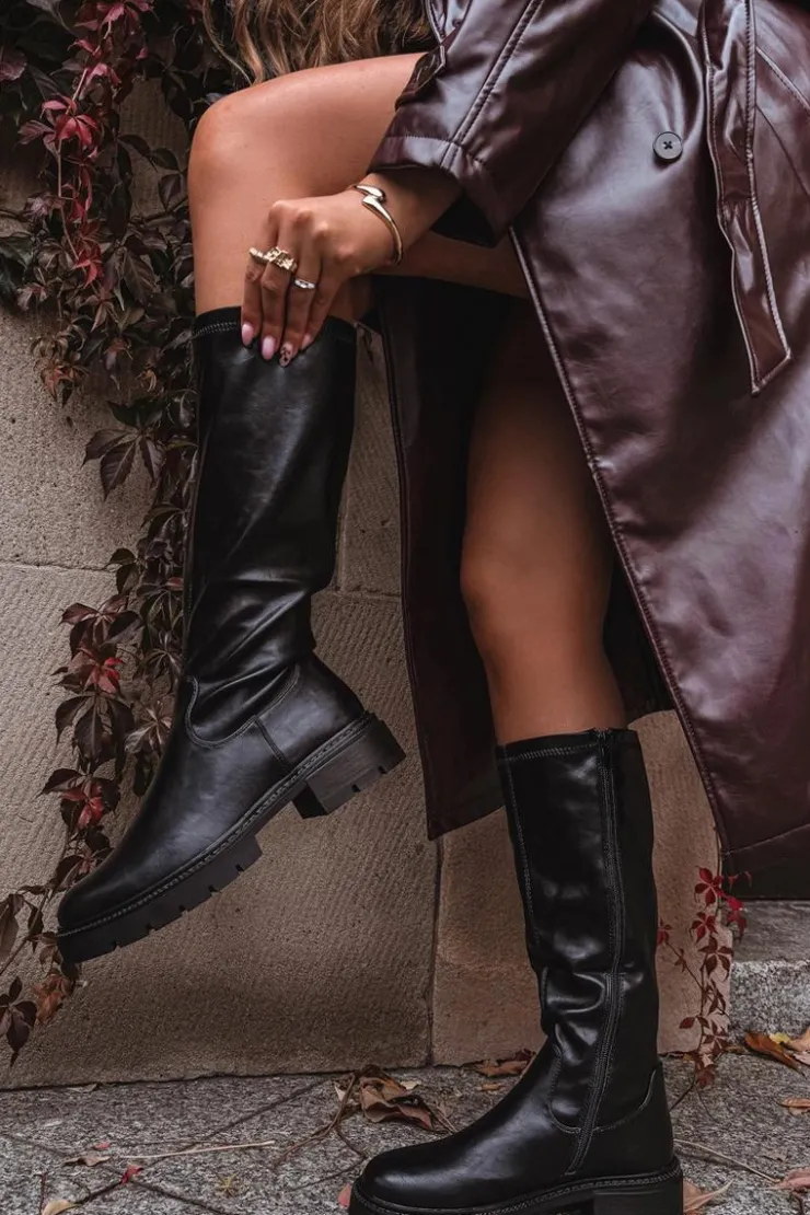 Damskie Boto Kozaki Damskie Z Eko Skóry Czarne Oceana