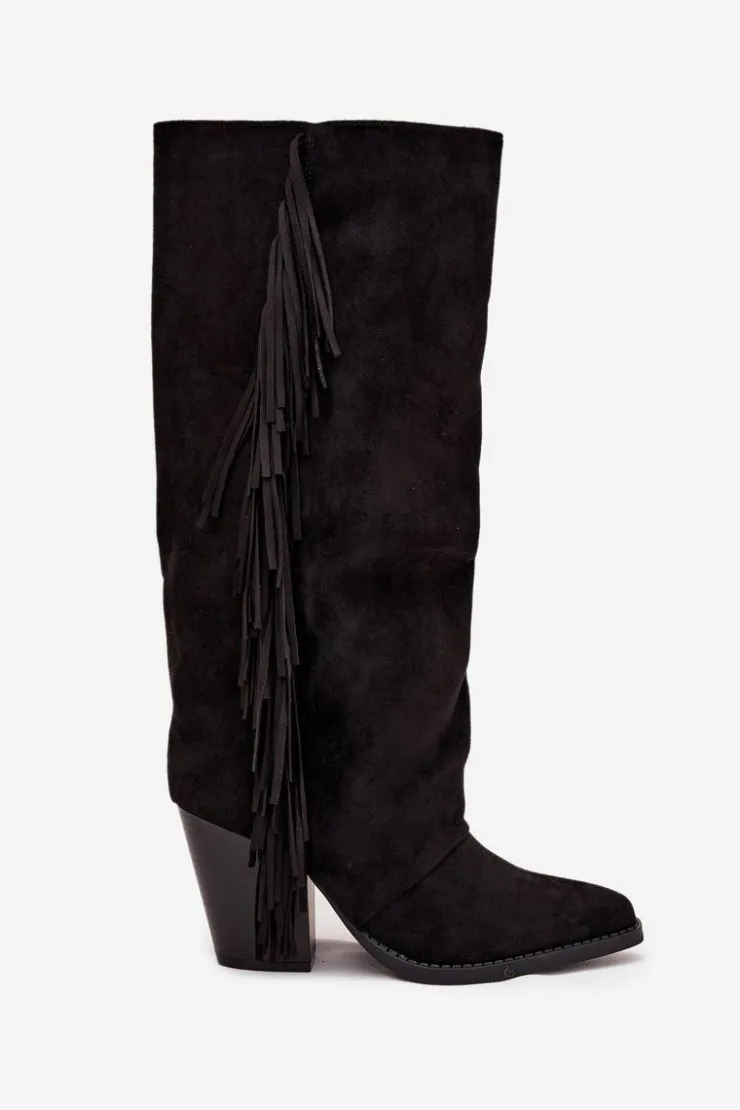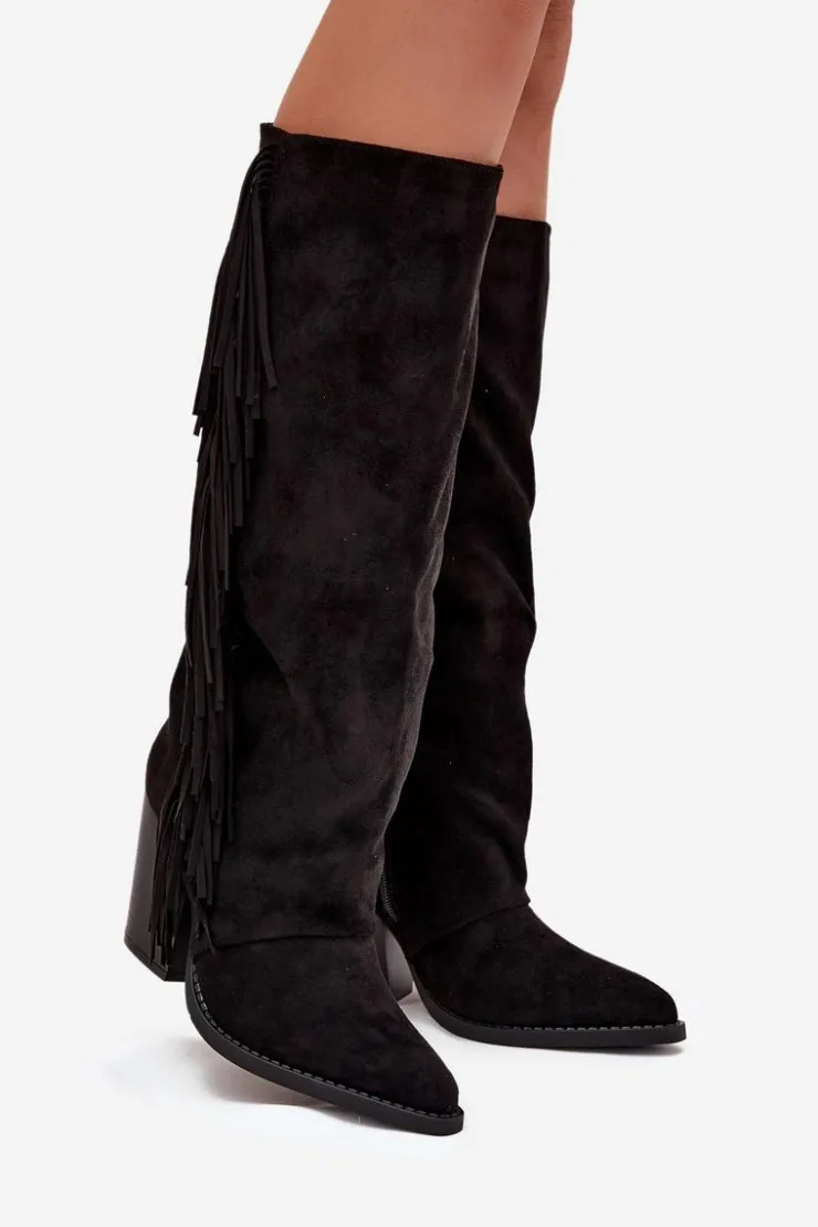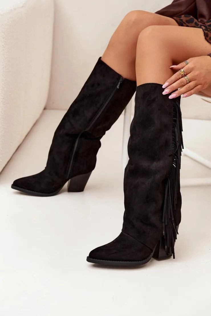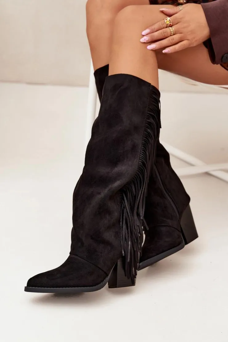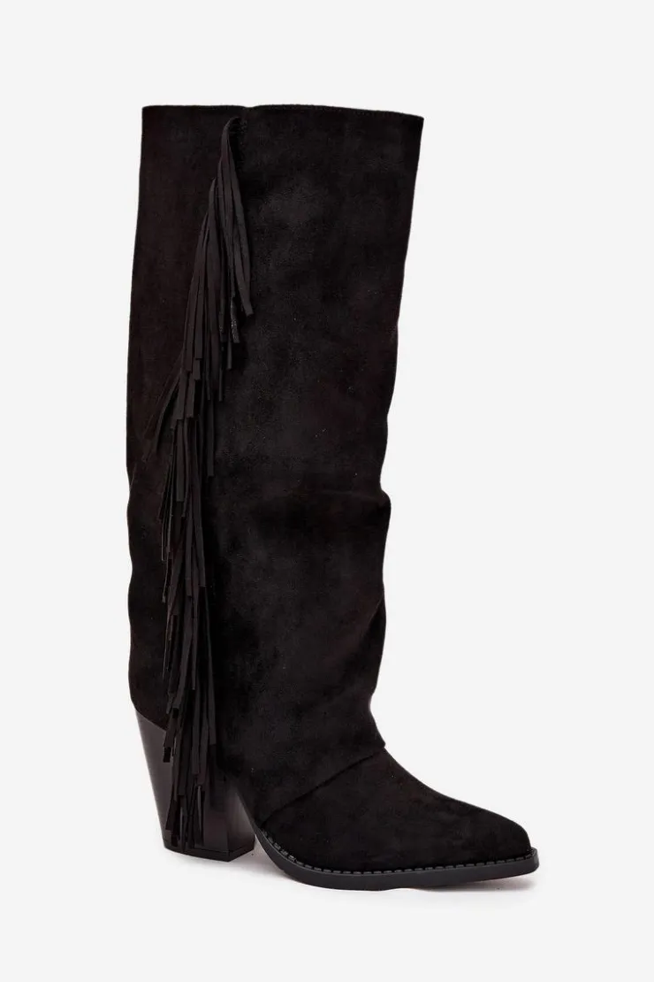 Frędzle na cholewce: Modne wykończenie w postaci frędzli nadaje butom kowbojskiego charakteru, przyciągając wzrok i dodając lekkości każdej stylizacji.