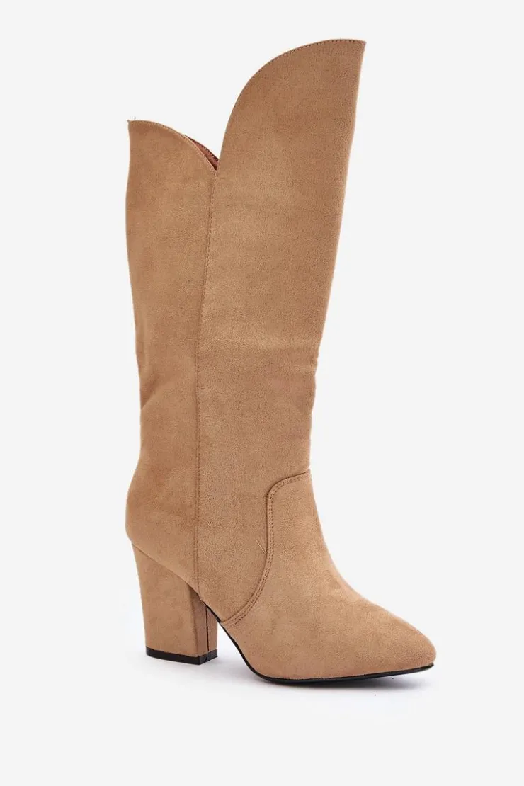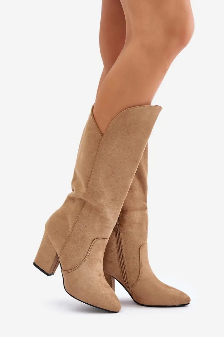 Kozaki z eko zamszu na obcasie typu słupek to elegancka propozycja na chłodniejsze dni. Wsuwane, z dodatkowym zapięciem na zamek, zapewniają wygodę i doskonałe dopasowanie do nogi. Idealne do stylizacji zarówno na co dzień, jak i na bardziej formalne okazje. BUTY MOGĄ POSIADAĆ DELIKATNE PRZEBARWIENIA NA CHOLEWCE!! Przy wyborze rozmiaru prosimy sugerować się tabelą rozmiarów.