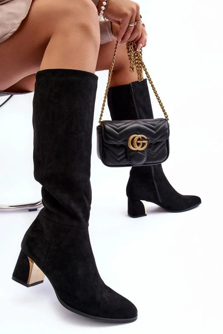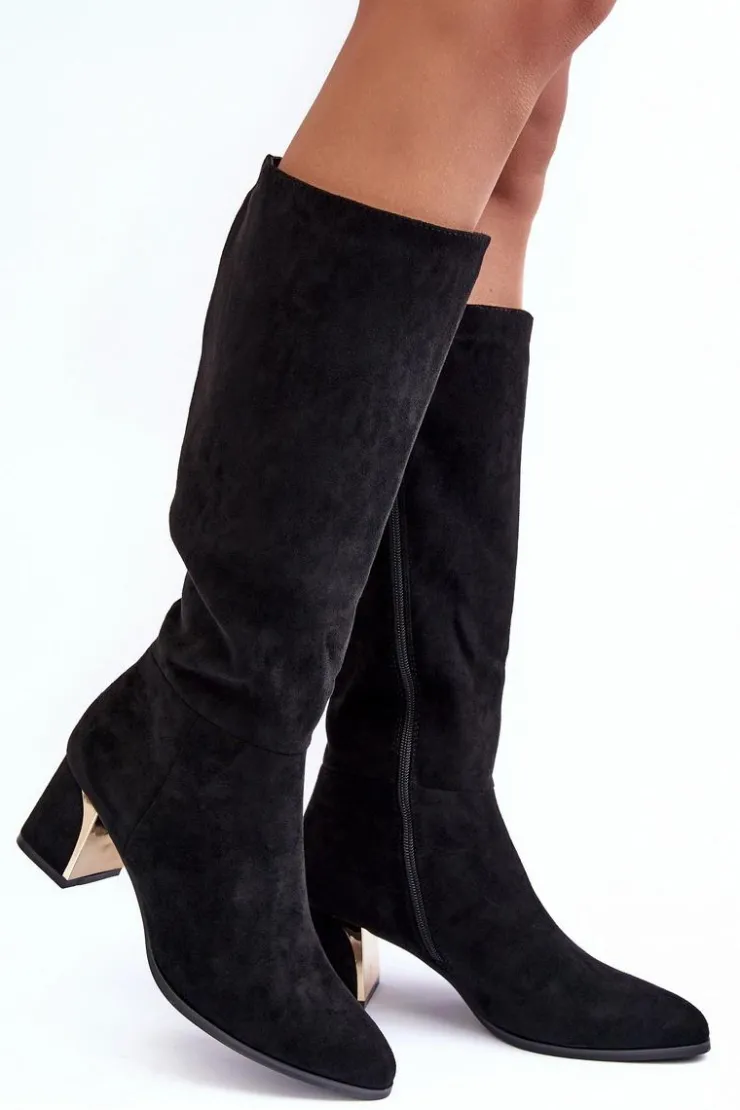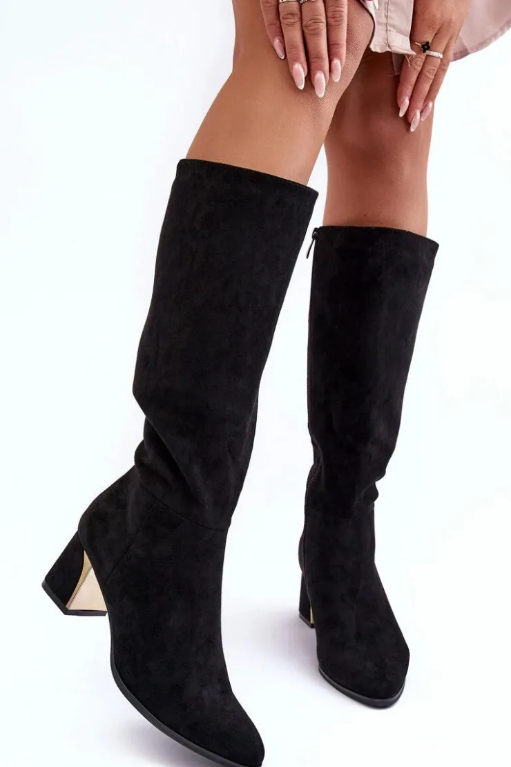Damskie Boto Kozaki Przed Kolano Zamszowe Na Obcasie Czarne Inatris