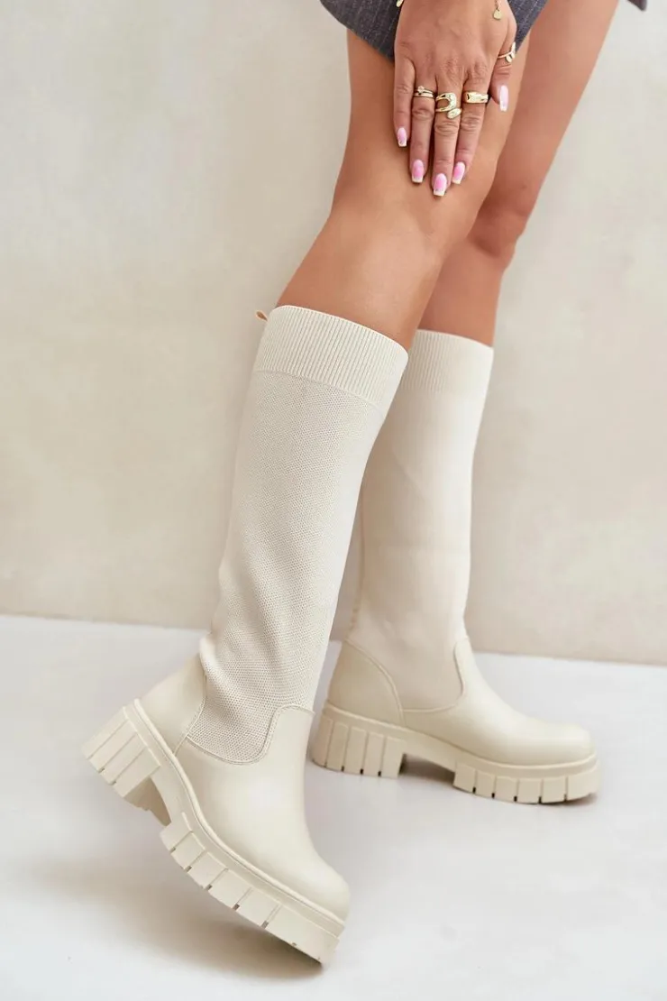 Klasyczne damskie kozaki zostały wykonane z połączenia eko skóry oraz materiału tekstylnego. Osadzone na płaskim obcasie i delikatnej platformie ze żłobieniami. Buty te posiadają ocieplaną wkładkę. Te klasyczne kozaki świetnie będą pasować do jesiennych stylizacji. Modny fason, który powinnaś mieć! Przy wyborze rozmiaru prosimy kierować tabelą rozmiarów.