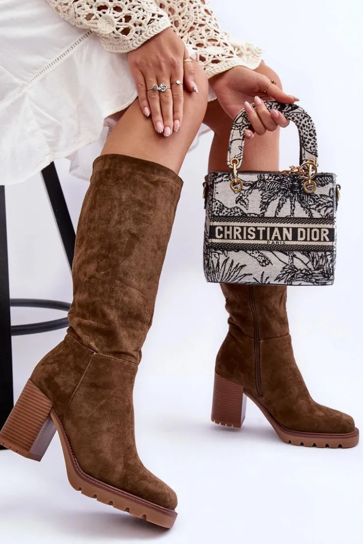 Kozaki damskie wykonane z eko zamszu. Zapinane na suwak po wewnętrznej stronie buta. Osadzone na masywnym obcasie. Model z cholewką przed kolano. Zapiętek usztywniany. Wnętrze ocieplone kocem obuwniczym. Wykorzystasz je w wielu stylizacjach! Koniecznie muszą być Twoje! Przy wyborze rozmiaru prosimy sugerować się tabelą rozmiarów.