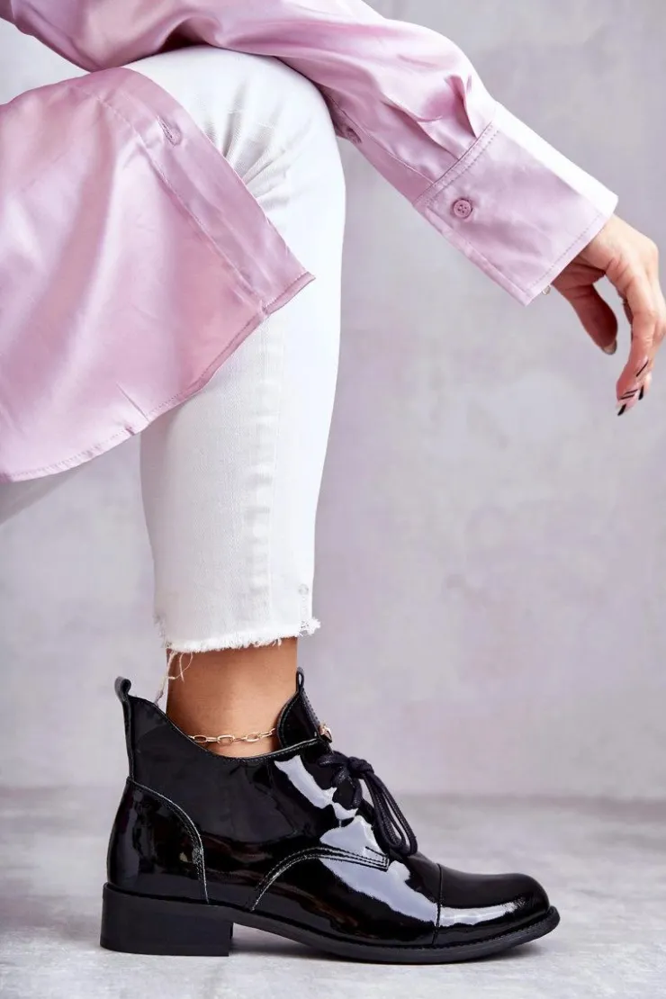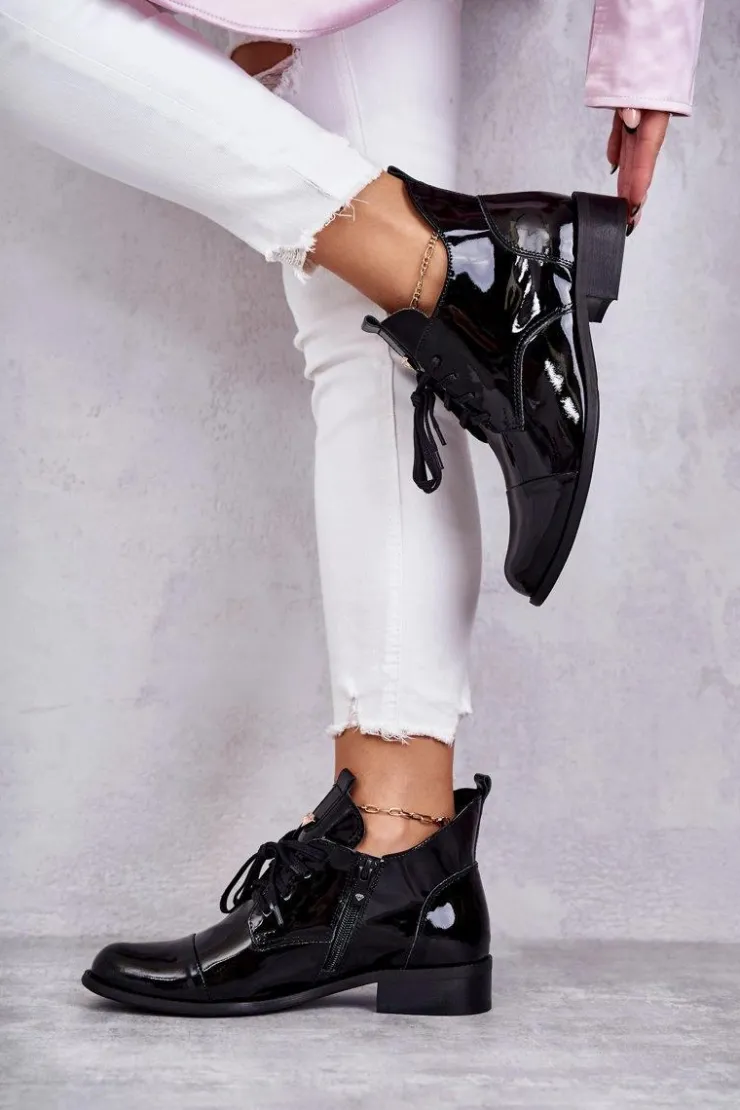 Damskie botki zostały wykonane z naturalnych skór najwyższej jakości z dbałością o szczegóły. Model posiada klasyczne sznurowanie oraz suwak z boku cholewki. Dodatkowo zapiętek jest usztywniany. Płaski obcas w tych botkach zapewnia stabilność podczas użytkowania. Nie są ocieplane. Miękka, wykonana z naturalnej skóry wkładka zapewni komfort podczas użytkowania. Przy wyborze rozmiaru prosimy sugerować się tabelą rozmiarów.