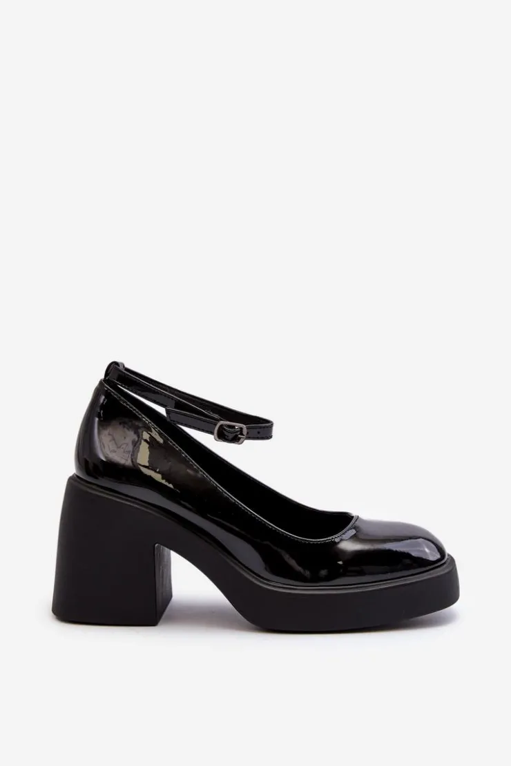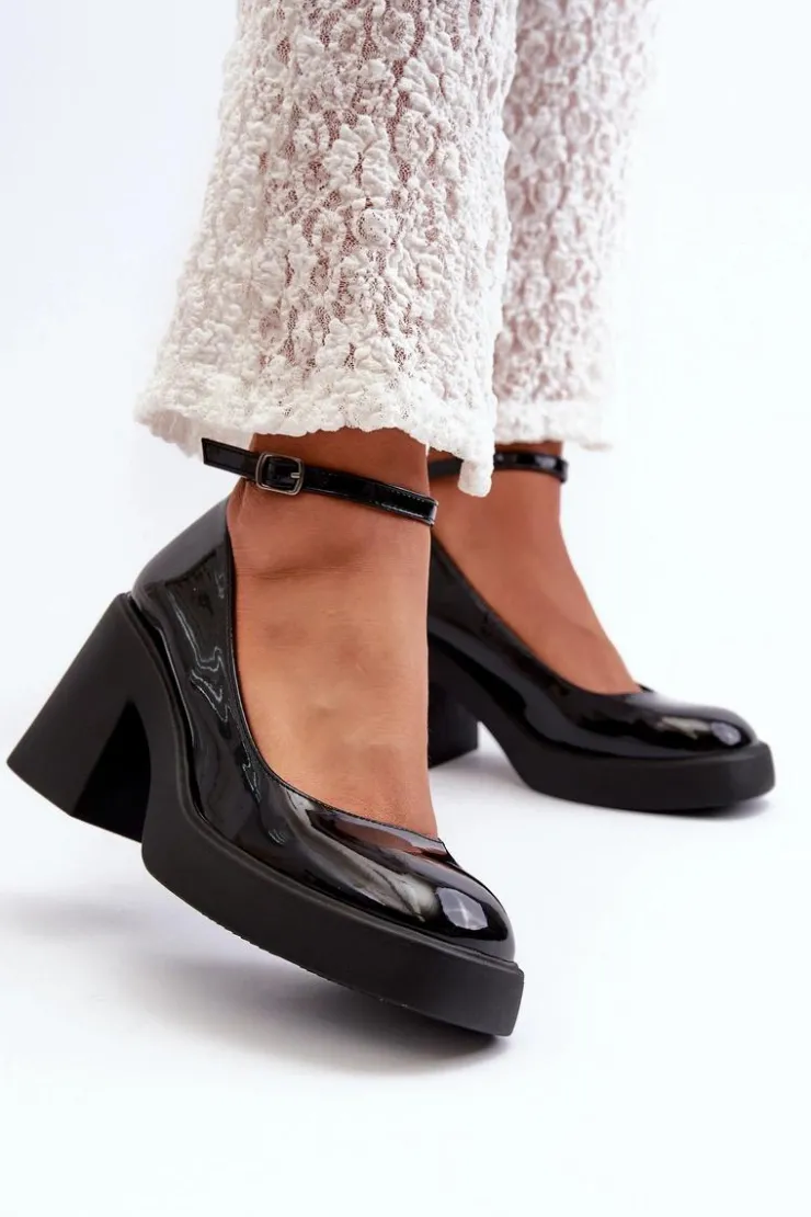Wyjątkowe czółenka wykonane ze skóry ekologicznej. Zapinane na regulowany pasek ze sprzączką, co zapewnia idealne dopasowanie do stopy. Osadzone na masywnym, wyższym obcasie w postaci klocka. Zapiętek jest usztywniany, a nosek kwadratowy. Dodatkowo buty posiadają delikatną platformę. Przy wyborze rozmiaru prosimy sugerować się tabelą rozmiarów.