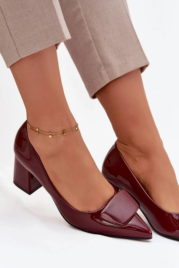Czółenka damskie wykonane z eko skóry to klasyczna propozycja, która łączy ponadczasową elegancję z komfortem noszenia. Model osadzony na stabilnym obcasie typu słupek zapewnia wygodę przez cały dzień, a szpiczaste noski optycznie wydłużają nogi, podkreślając kobiecy charakter. Z przodu znajduje się ozdobny detal. To idealne czółenka do eleganckich stylizacji – świetnie sprawdzą się zarówno w pracy, jak i podczas wyjątkowych okazji, doskonale komponując się z sukienkami, spódnicami i klasycznymi spodniami. Przy wyborze rozmiaru prosimy kierować się tabelą rozmiarów.